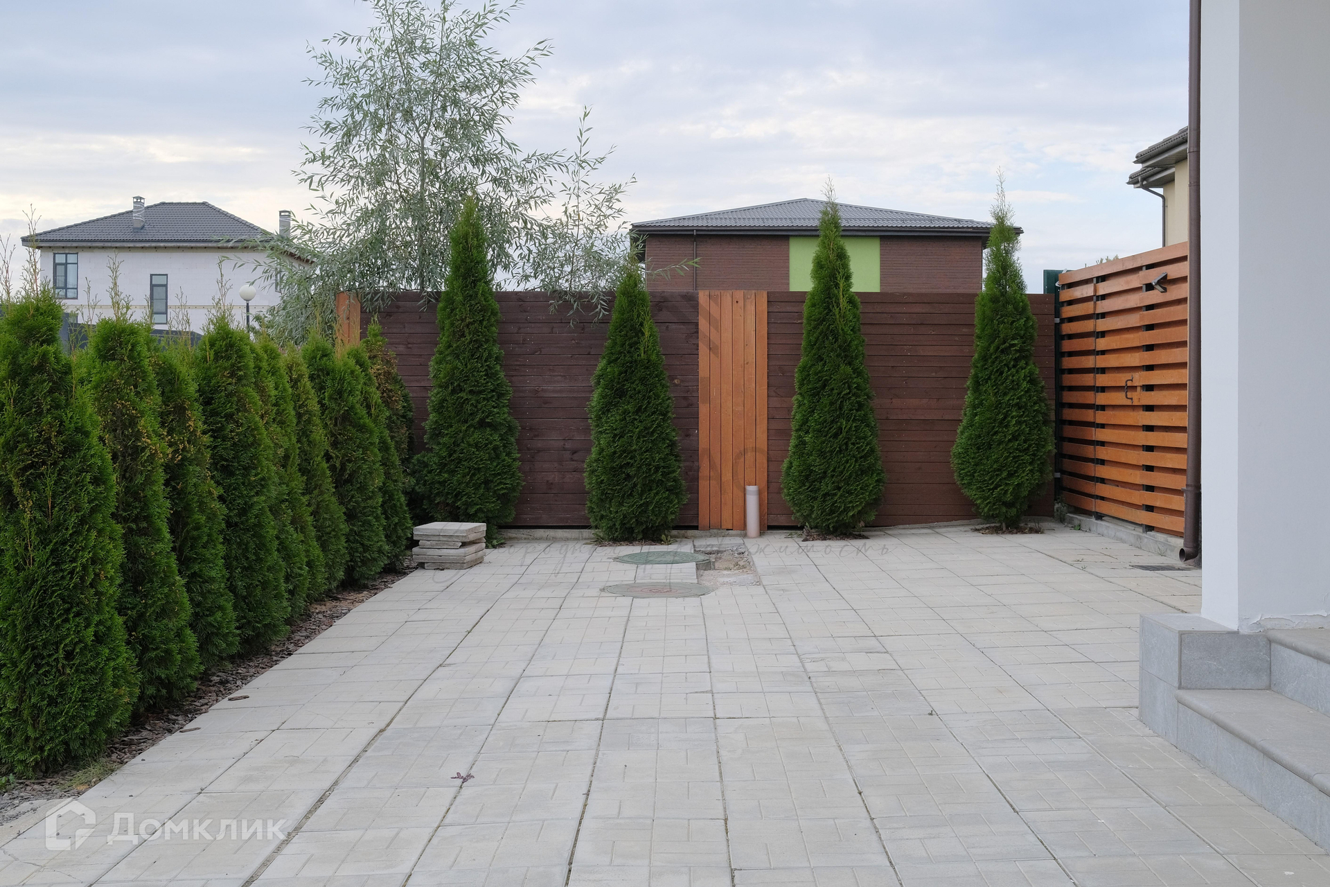 Ухоженная территория озеленена газоном, туями и деревьями!