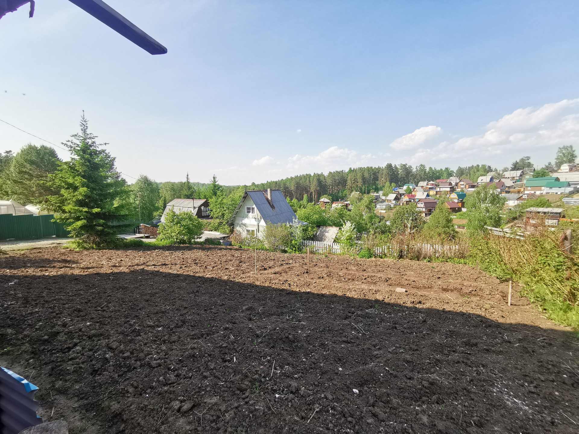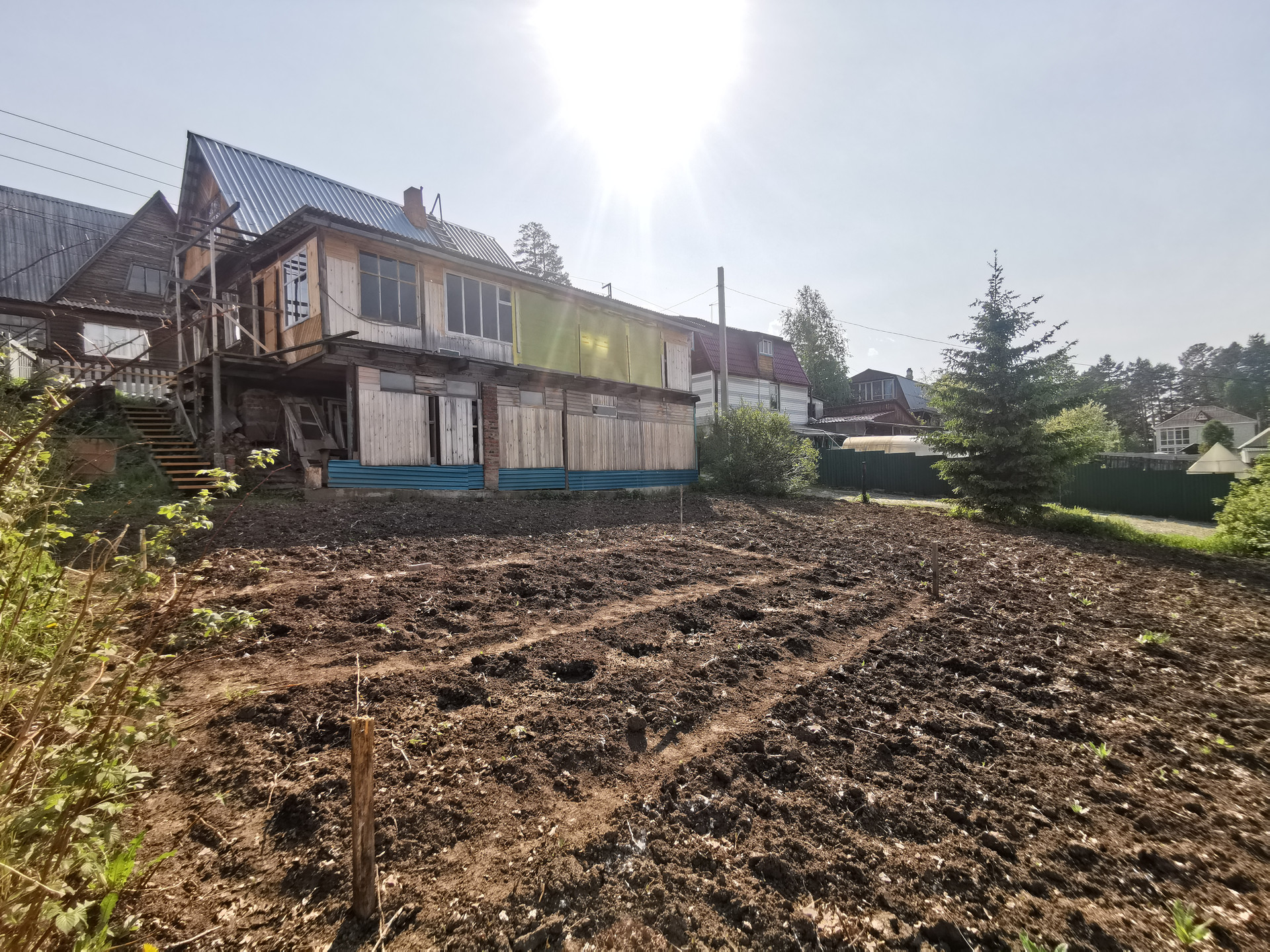 Участок площадью 7 соток. На участке есть красивая ель и небольшие насаждения плодово-ягодных растений. Водопровод летний.