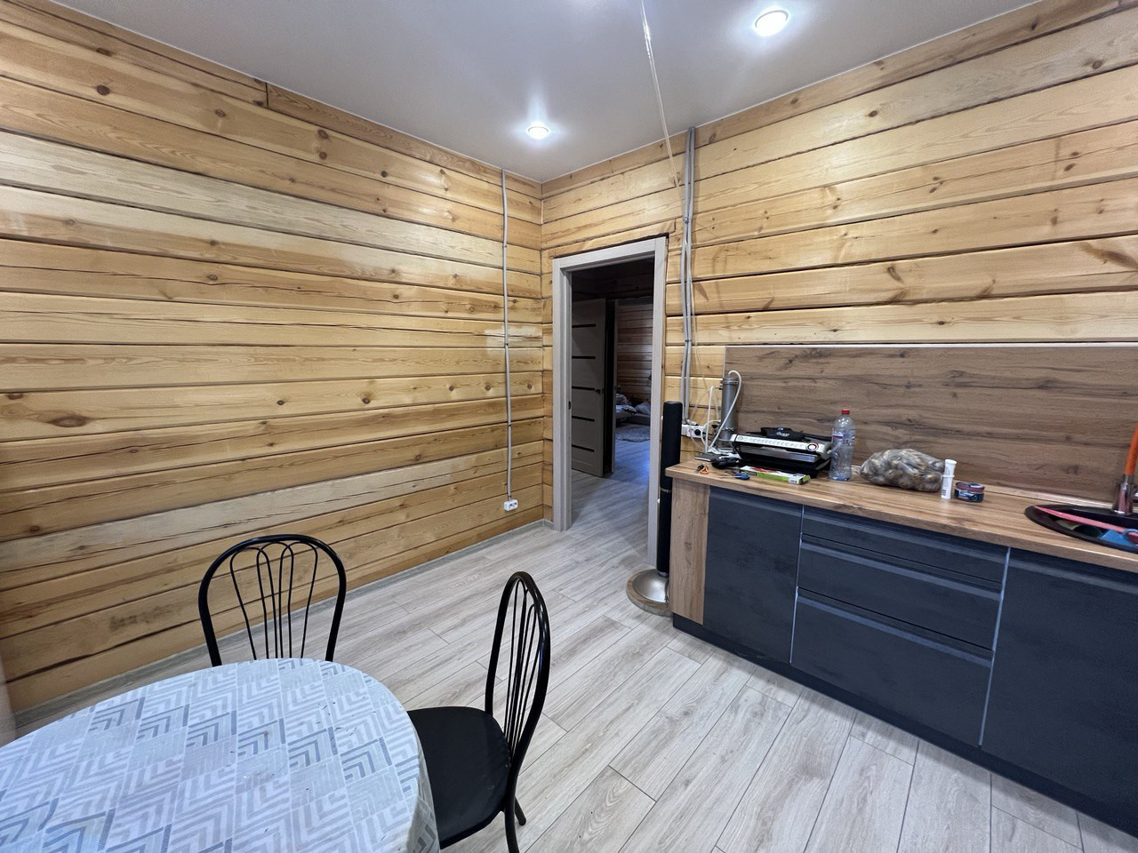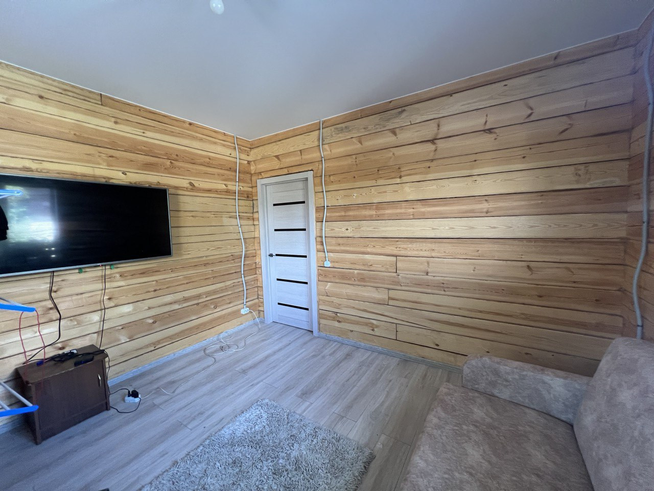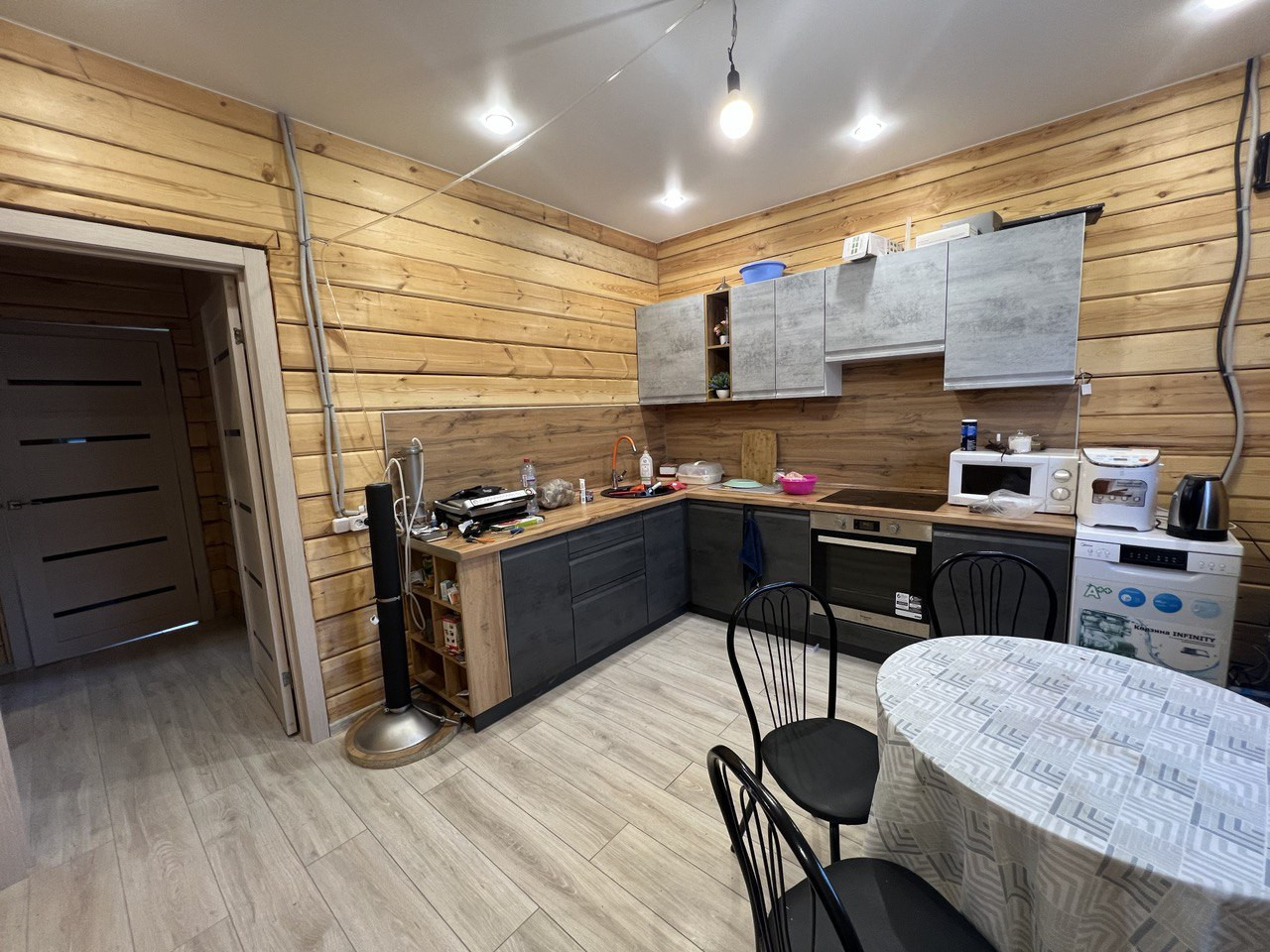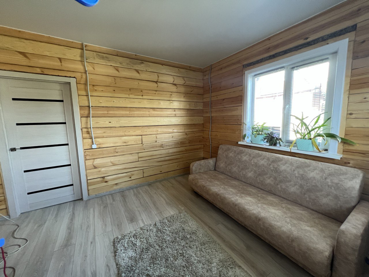 По всему дома теплый пол, покрыт ламинатом, потолок натяжной.