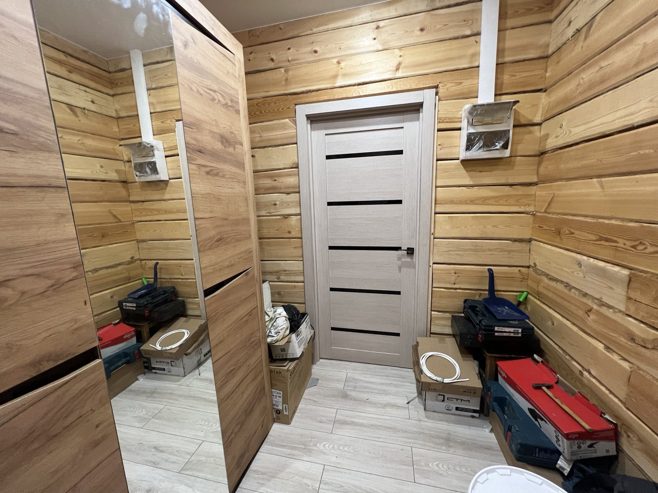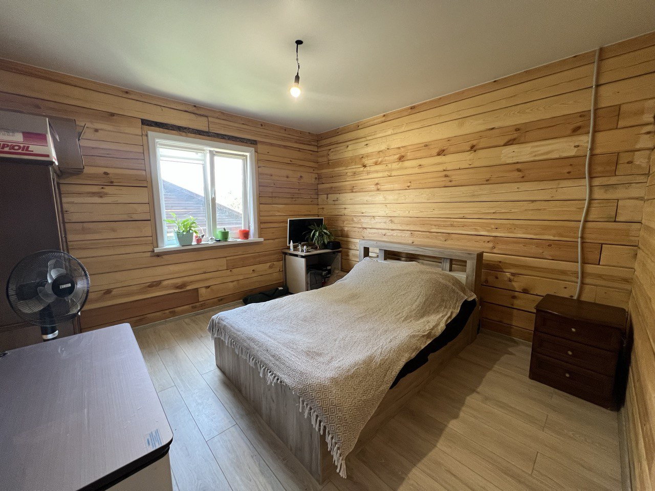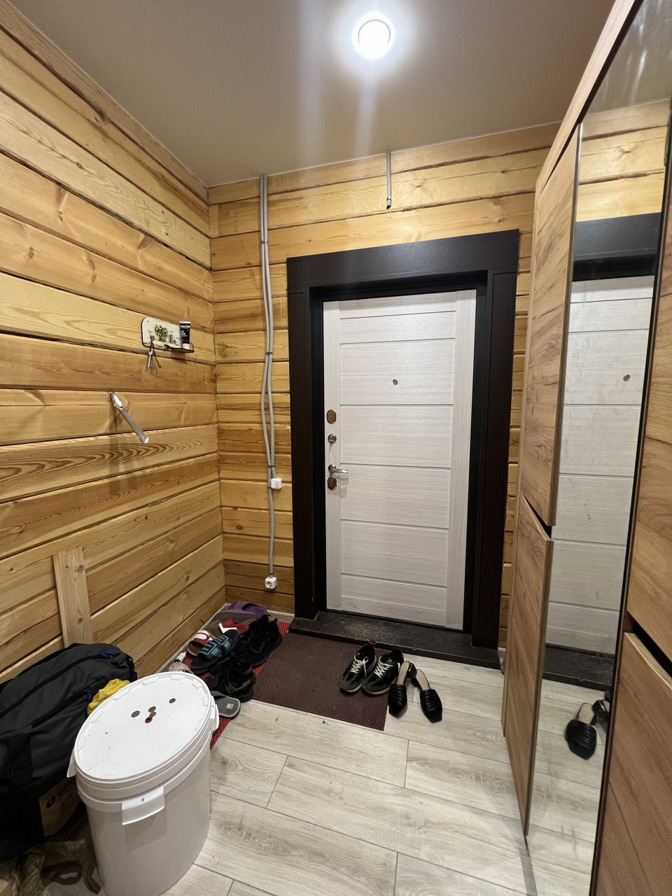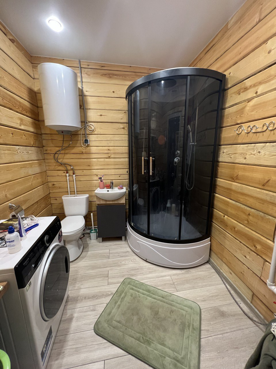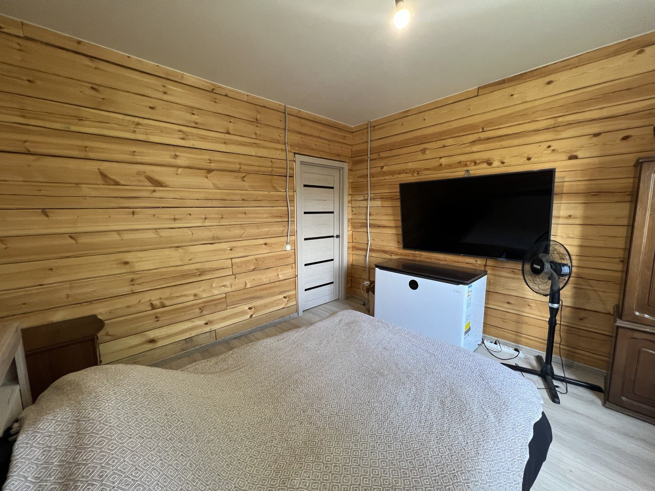 По всему дома теплый пол, покрыт ламинатом, потолок натяжной.