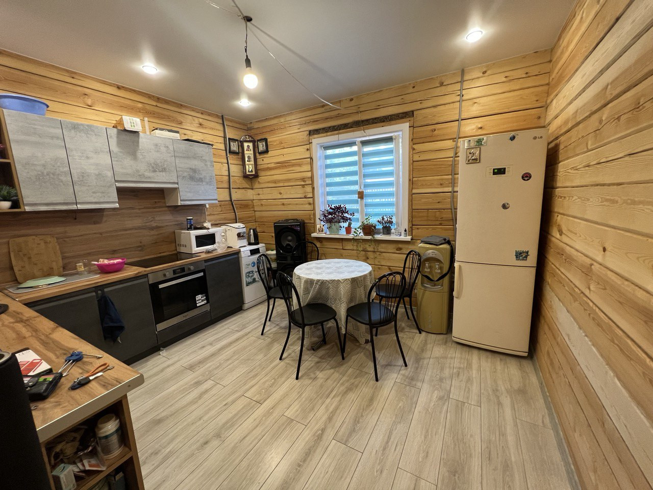 Вся мебель в доме с кухонным гарнитуром остаётся новым собственникам.