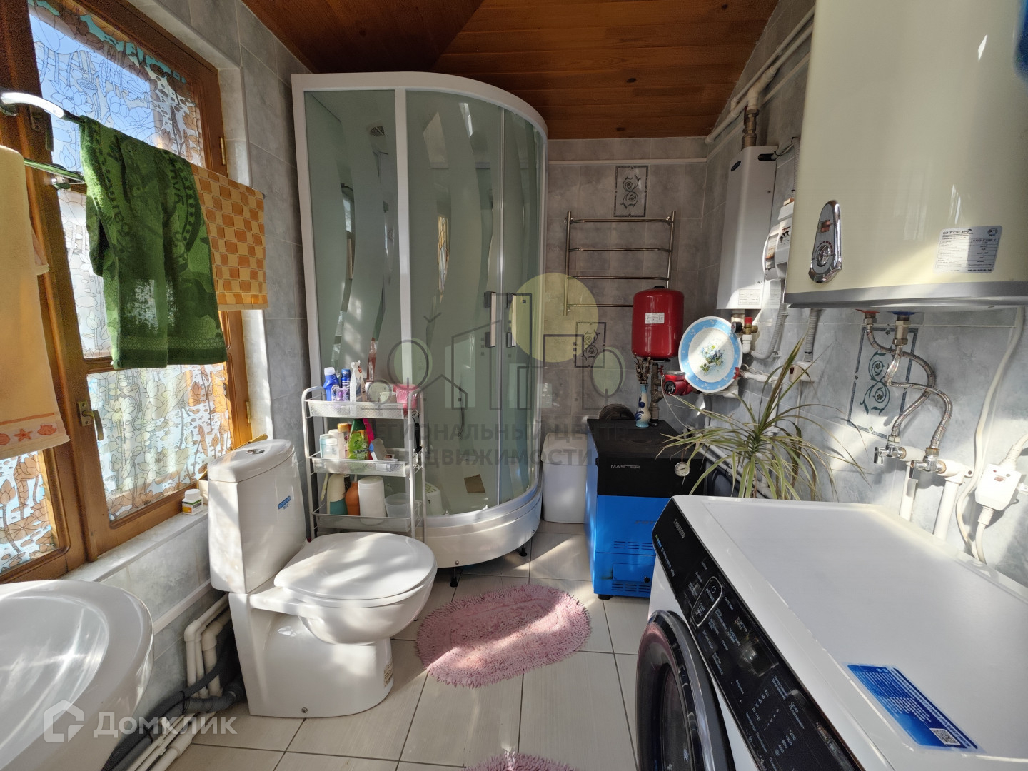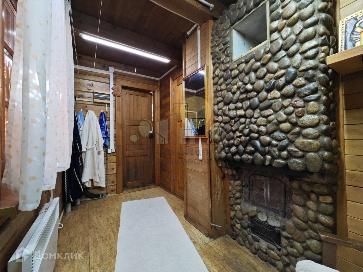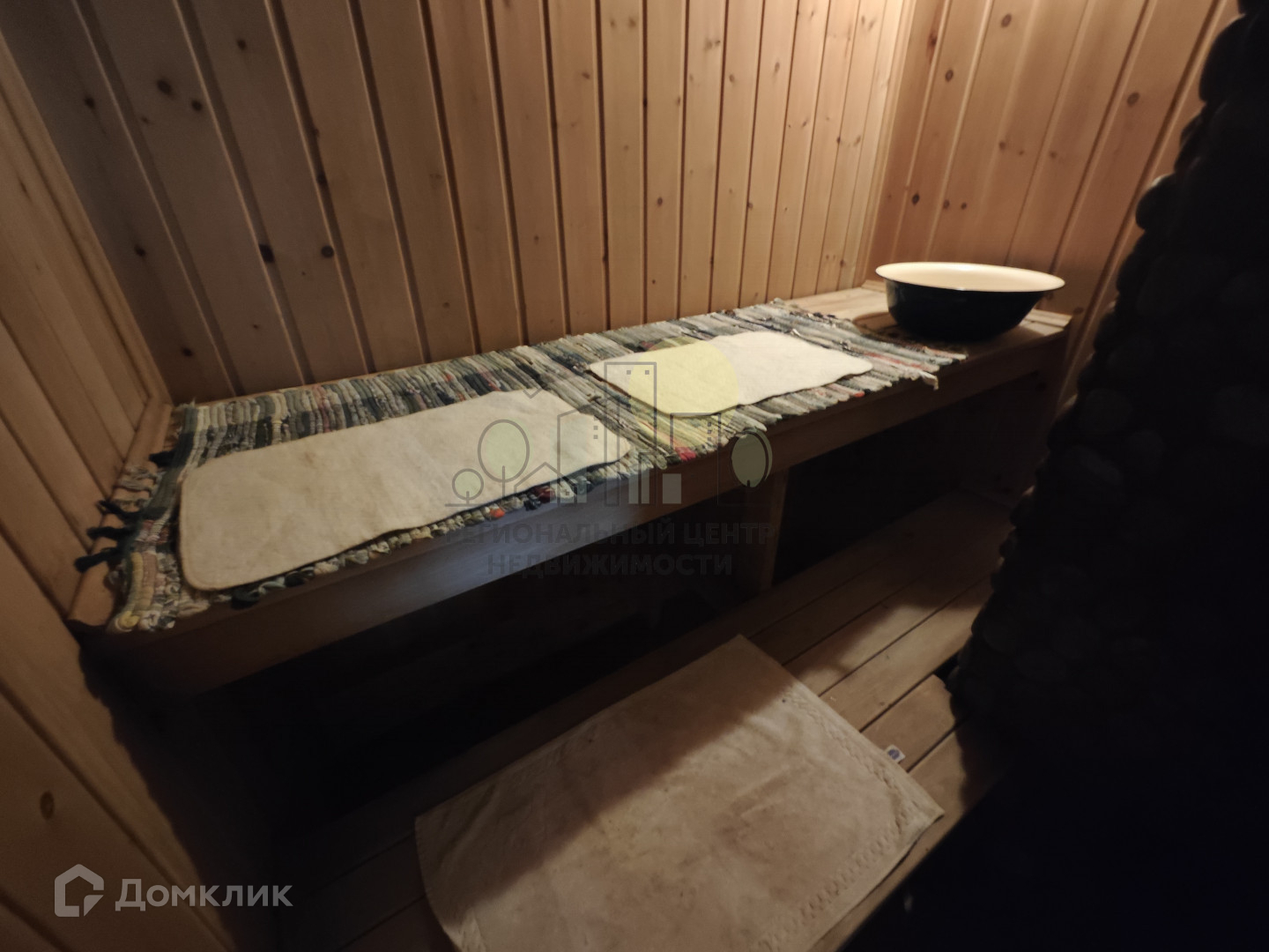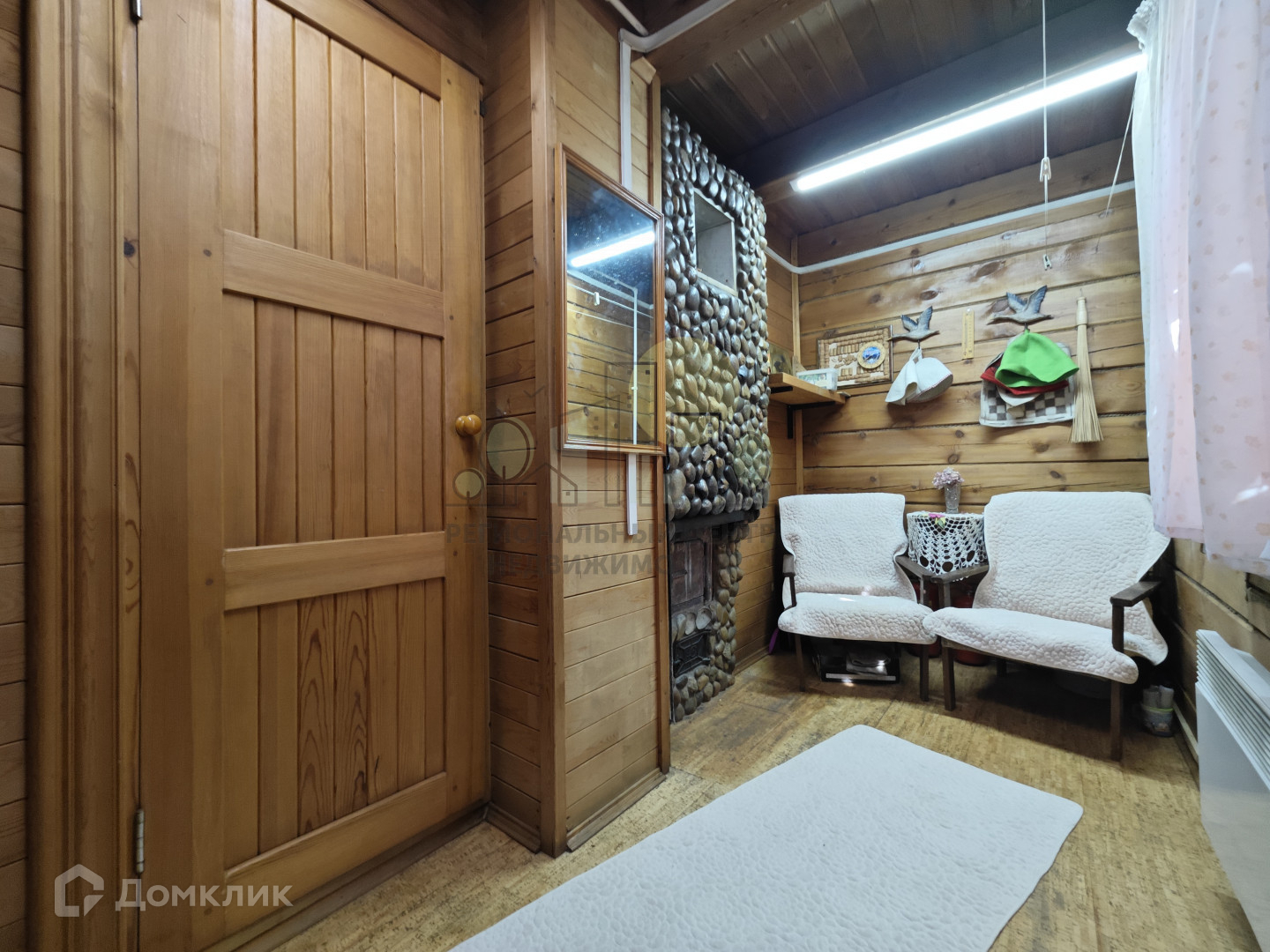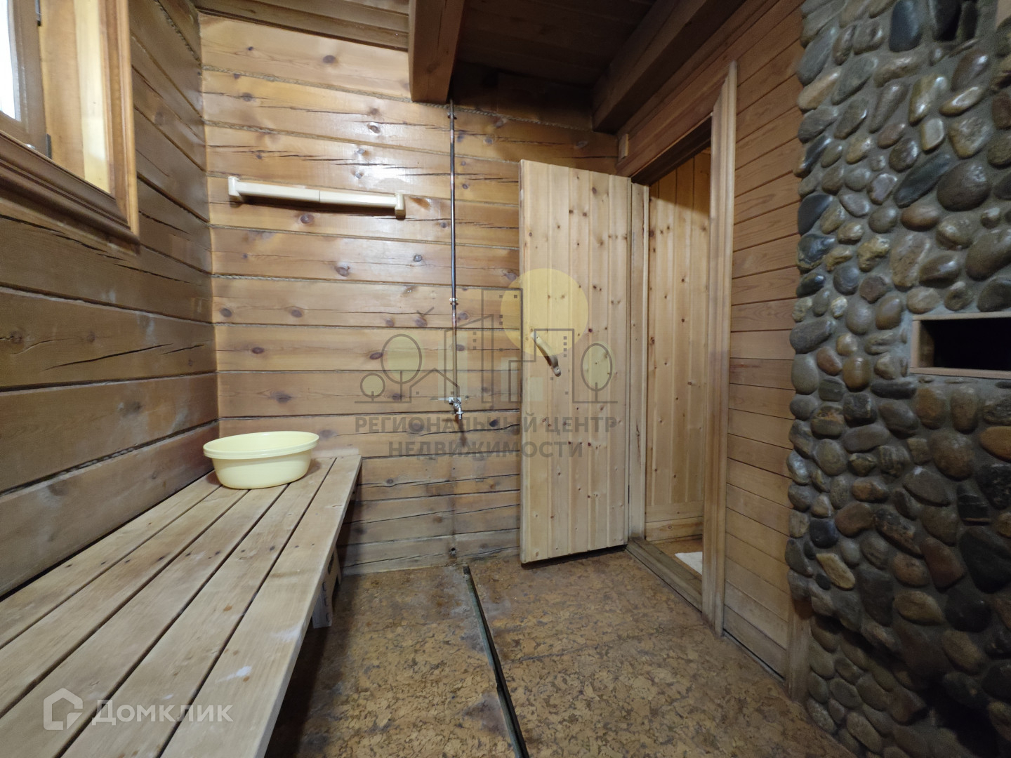 баня 22 м2, печь отделана камнем, заведена вода, полы оклеены пробковыми панелями;