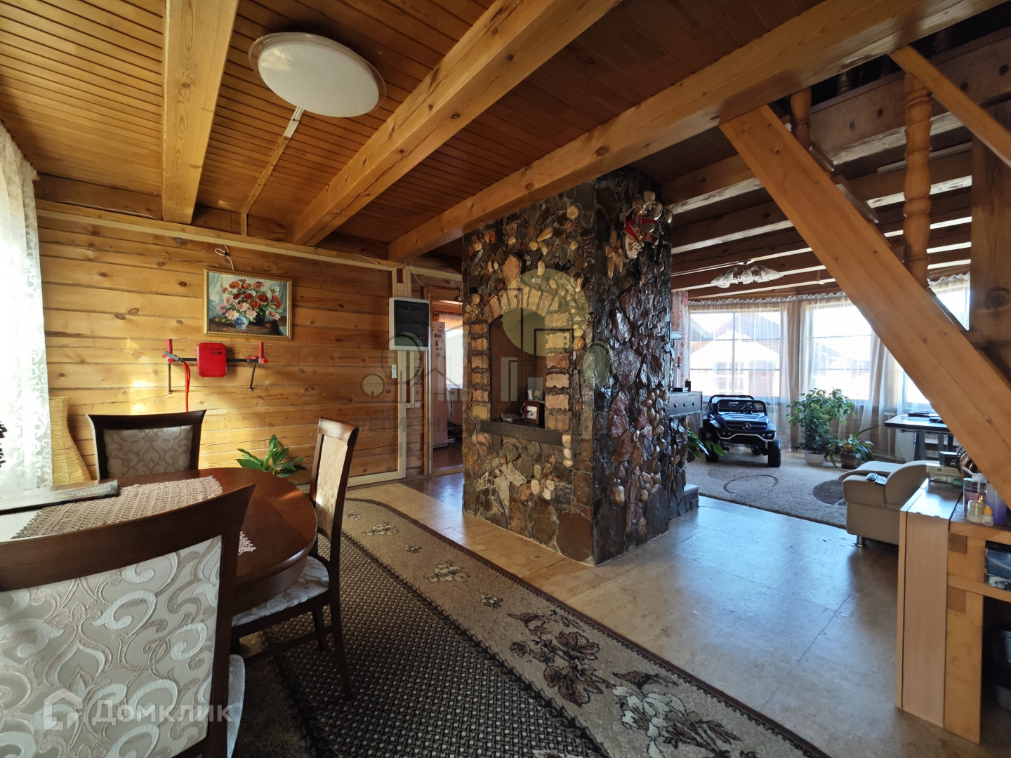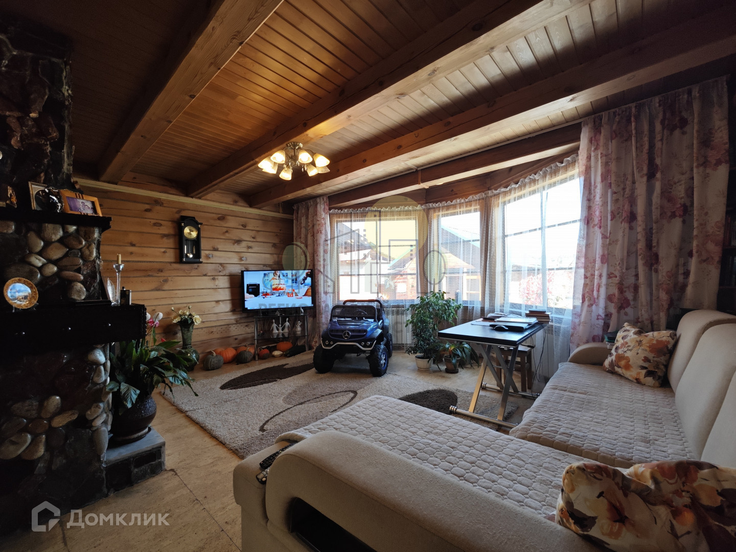 Дом 2005 года постройки из строганного с двух сторон бруса площадью 120 м2, 2-х этажный. На первом этаже просторная веранда-прихожая, каминный зал, кухня-столовая, полноценный санузел, кабинет с панорамными окнами. На втором этаже спальня и детская комната, а также подсобное помещение. Отопление бойлерное, также есть печь и камин (отделаны натуральным камнем), электричество 15 кВт (3 фазы), септик для дома 6 м3, также в дом проведены интернет и телевидение. Вся мебель и техника, а также хоз. инвентарь и т.п. достанутся новому владельцу и включены в стоимость!