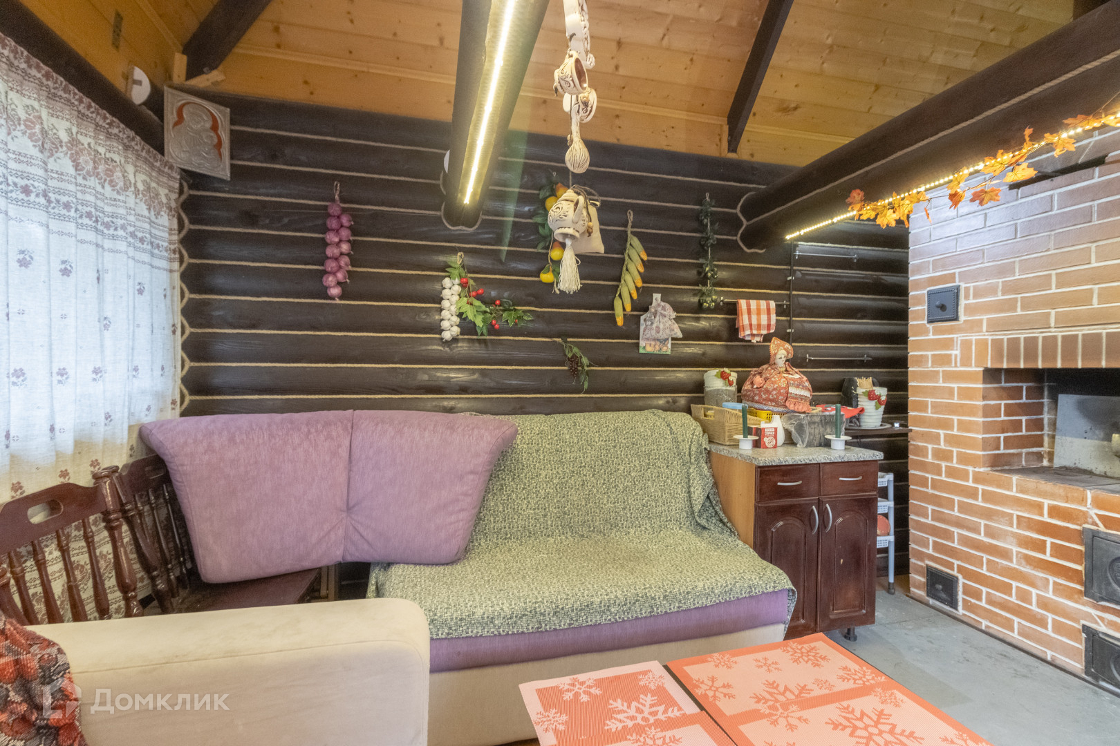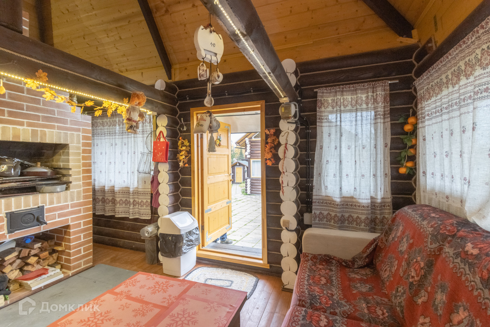 Ещё в комплекс входит небольшой уютный гостевой дом 17 м.кв., с большой русской печью со встроенным мангалом двумя диванами и местом для готовки. В центре участка бревенчатая беседка с большим столом, освещением и качелями.