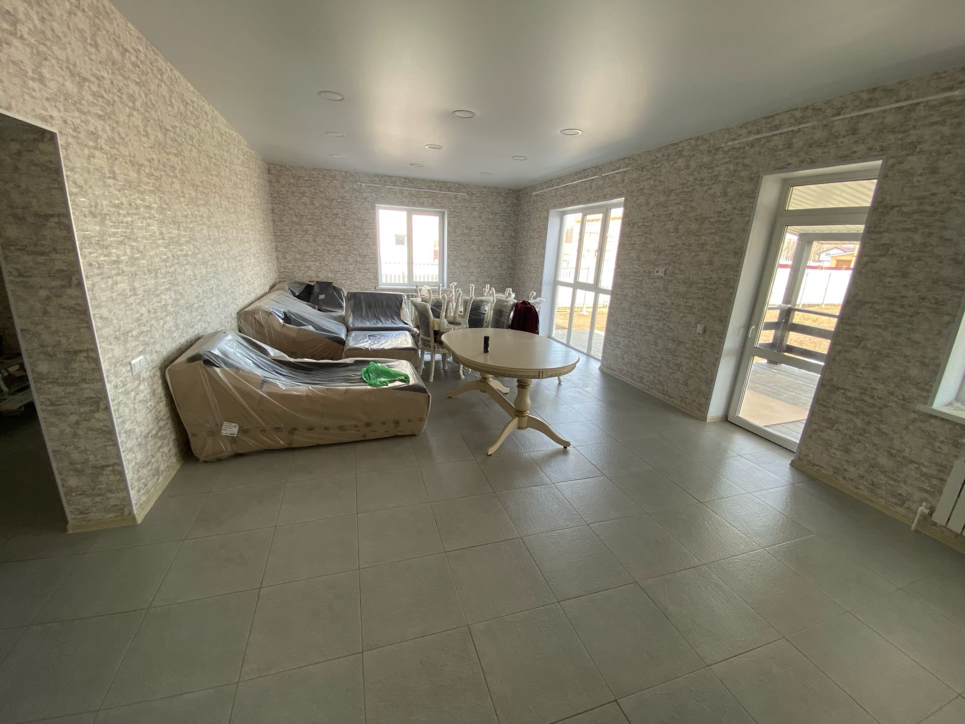 Крытая терраса на заднем дворе со входом в столовую