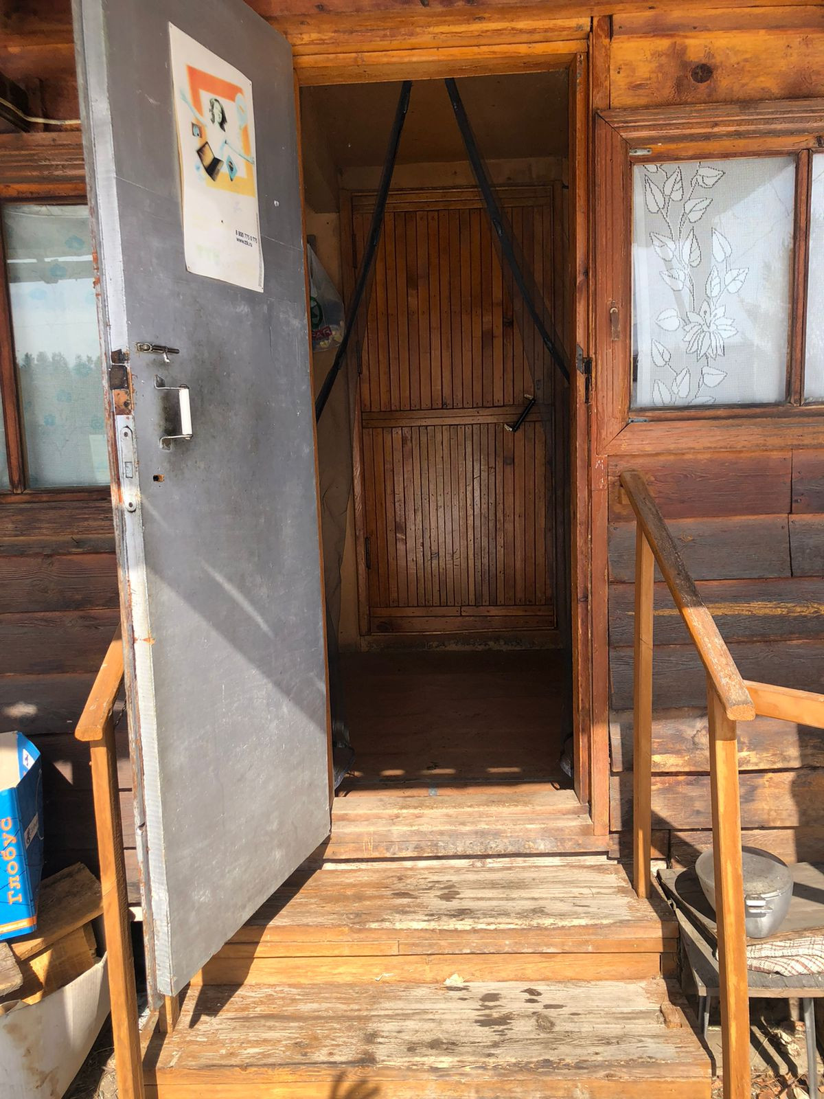 Есть скважина. На участке расположены теплица (поликарбонат), баня, гараж, сарай. Частично остается инвентарь (лопаты, вилы и т.п.). Насаждения: вишня, малина, смородина, крыжовник.