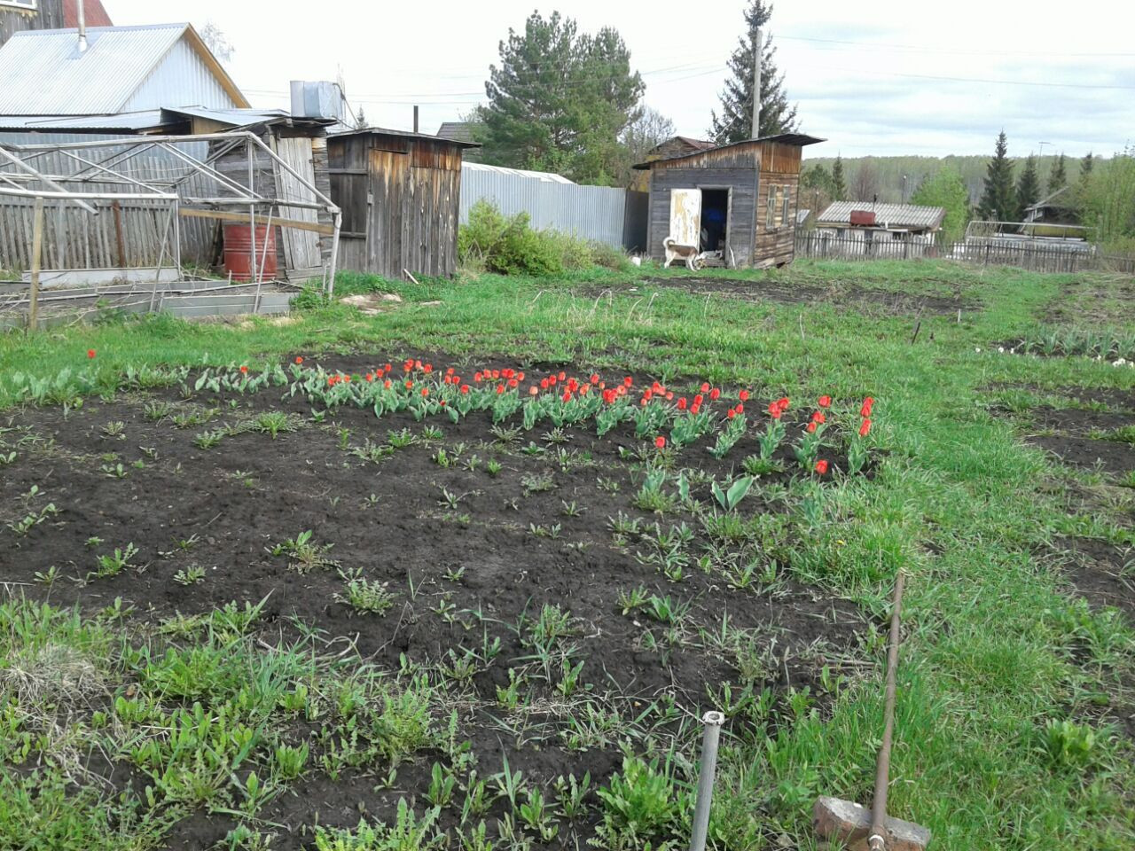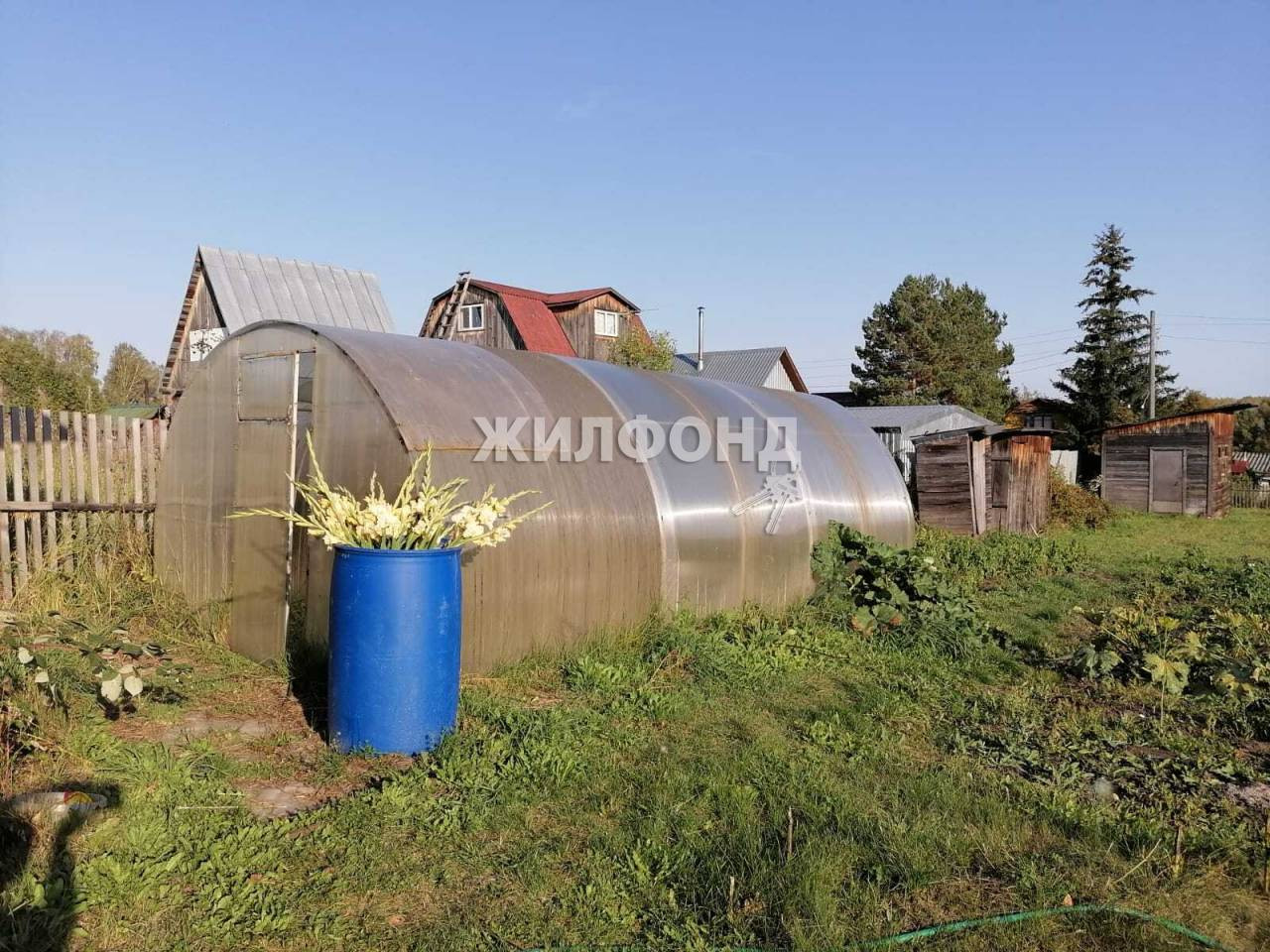 Участок разработан, есть теплица, насаждения. Дружелюбные соседи.
