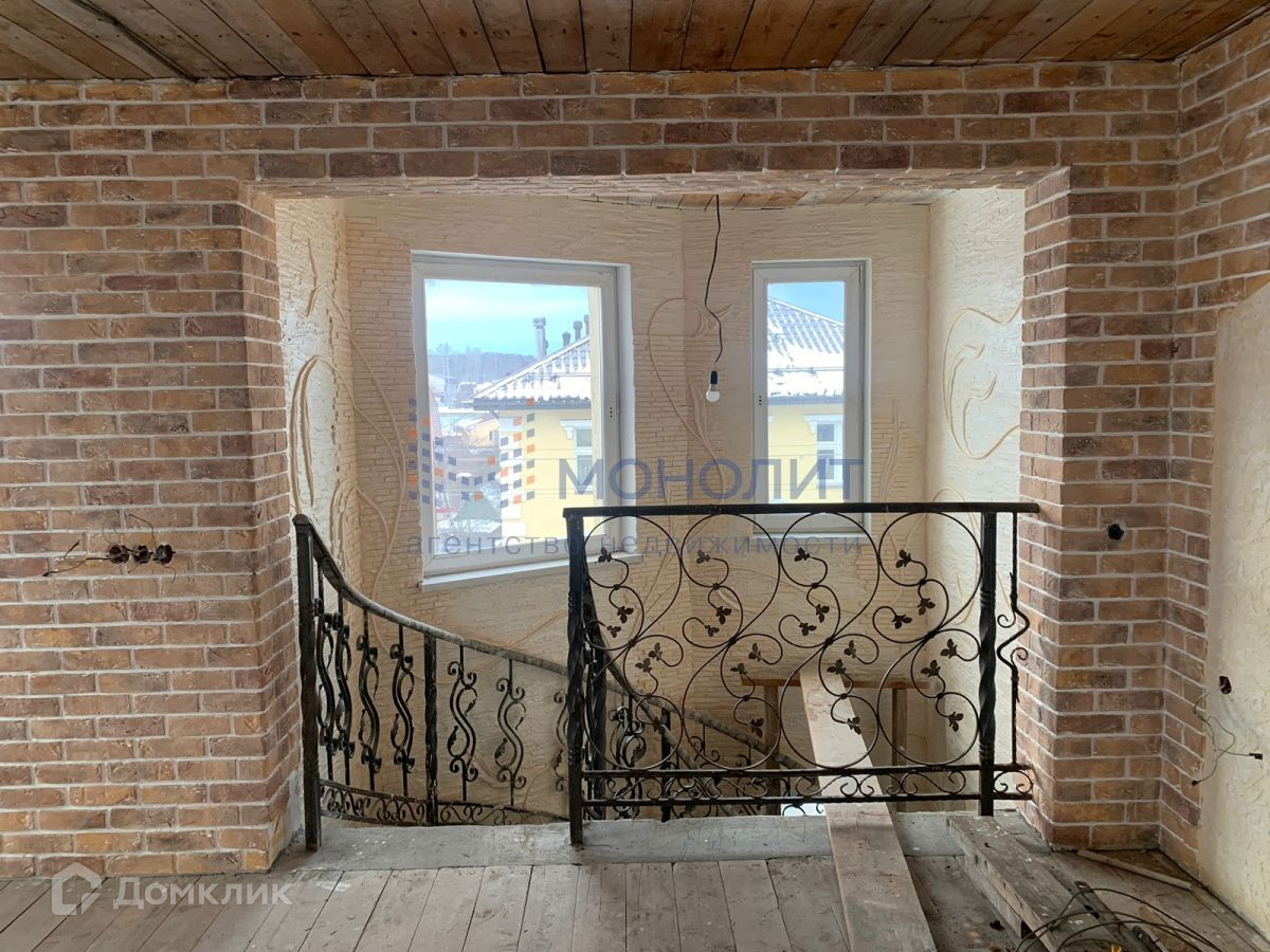 На первом этаже расположена кухня, коридор,2 санузела,2 большие комнаты с искусственным камином, смонтированы теплые полы. Лестница кованная, рассчитана под обшивку деревом, ведущая на второй этаж, где расположены 4 комнаты, две из них спальни с личной ванной комнатой. Третий этаж свободной планировки с красивым дизайном. Полностью благоустроенный двор выложенный качественной брусчаткой. Во дворе дополнительно построена котельная. Котел рассчитан на твердотопливное отопление.