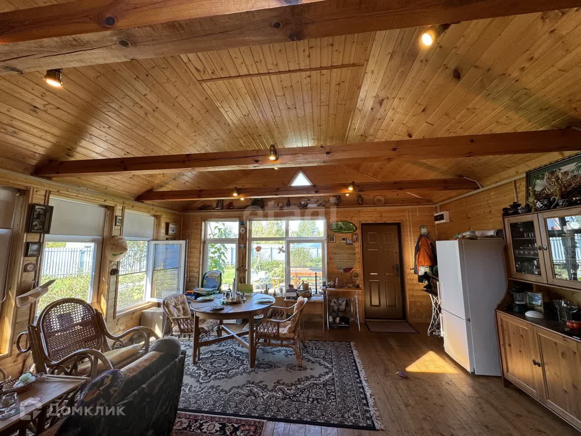 Площадь дачи -40 кВ.м ,помещение студия с большими окнами ,внутренняя отделка вагонка ,за счет этого помещение светлое ,солнечное ,и создается уют !