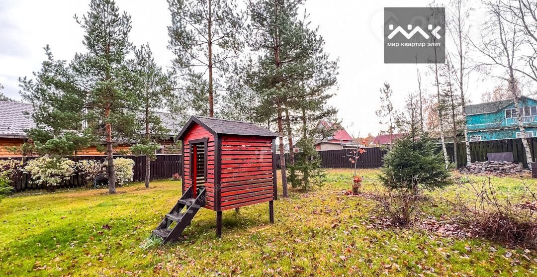Участок оформлен лаконичным ландшафтным дизайном с насаждениями в виде лиственных и хвойных деревьев. По периметру высажены кустовые цветы и ягоды.  Есть зона барбекю. Для хранения садового инвентаря и уличной мебели, на участке возведён хозяйственный блок. Для транспорта предусмотрен навес на два авто.