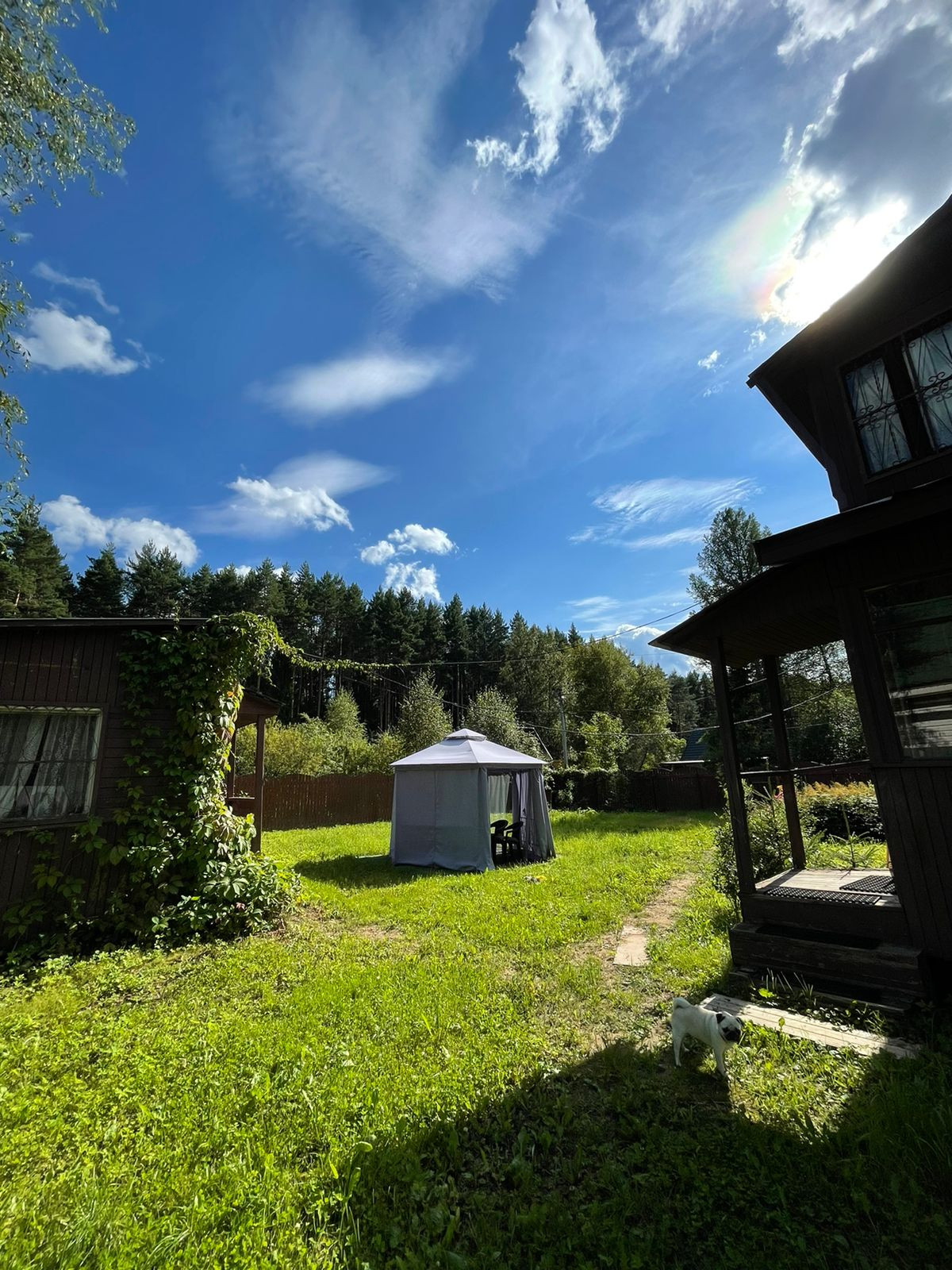 Участок 7 соток. Ровный. Прямоугольной формы. Газон, беседка, барбекю. Забор в хорошем состоянии. Парковка с воротами. Дом полностью готов к комфортному проживанию. Проводной высокоскоростной интернет, телевидение.