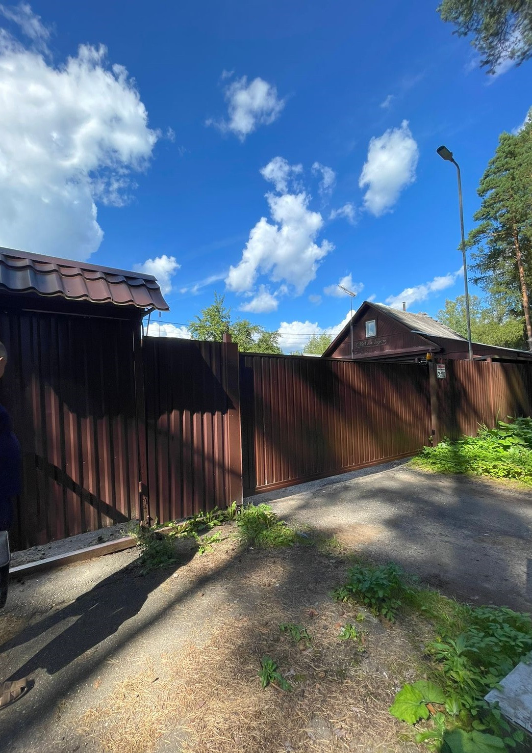Небольшое СНТ (56 участков), территория СНТ огорожена, закрыта для прохода и проезда посторонних (въезд и проход по ключам, пультам), окружена лесом, есть собственный пруд. Автоматические ворота на въезде, видеонаблюдение.