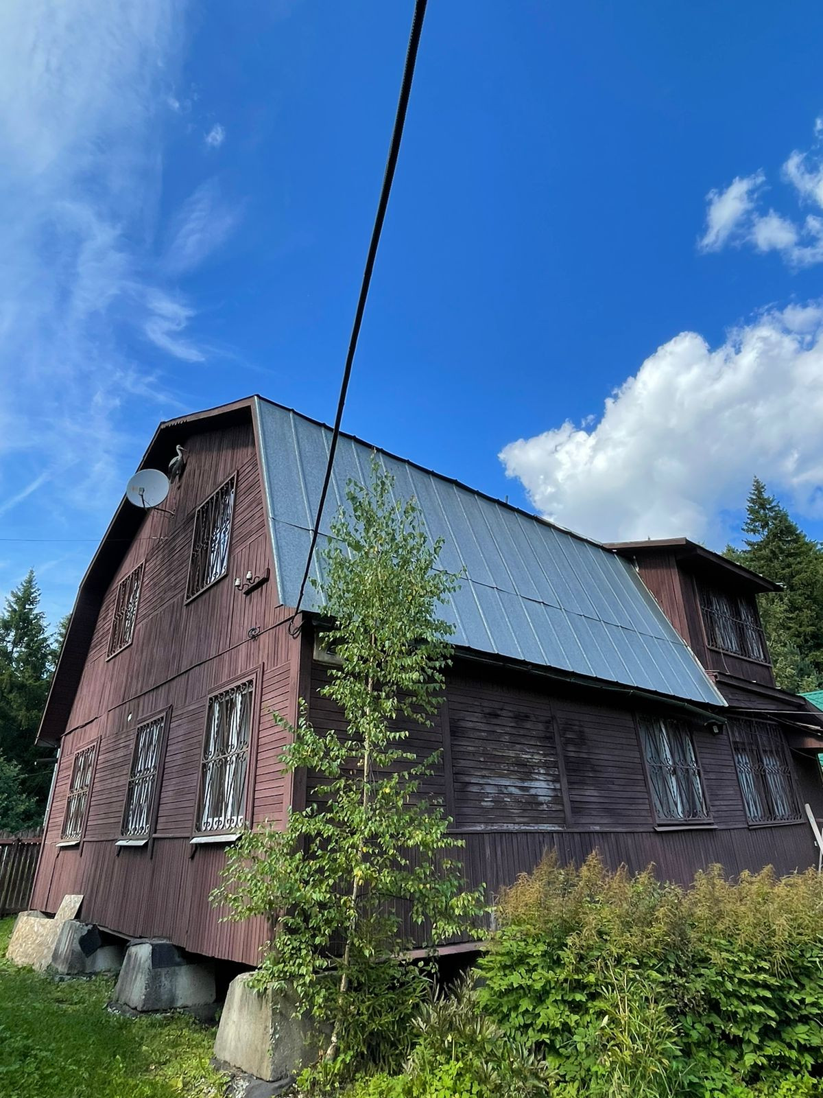 Дом 140 кв м,. 2 этажа. Из сруба. Внутренняя отделка - вагонка. Внешняя - доска. Крыша - металл (оцинковка). Фундамент - бетонные платформы, бетонные блоки. Окна на первом этаже частично пластик. Металлические входные двери. В 2023г. в доме была произведена реконструкция частично утеплены стены и пол, полностью переделано водоснабжение (заведена вода, установлены фильтры, насос, гидроаккумулятор, бойлер, септик, два санузла, вода круглый год), полностью заменена электрика. Электроэнергия 15 кВт, три фазы. Видеонаблюдение на участке.