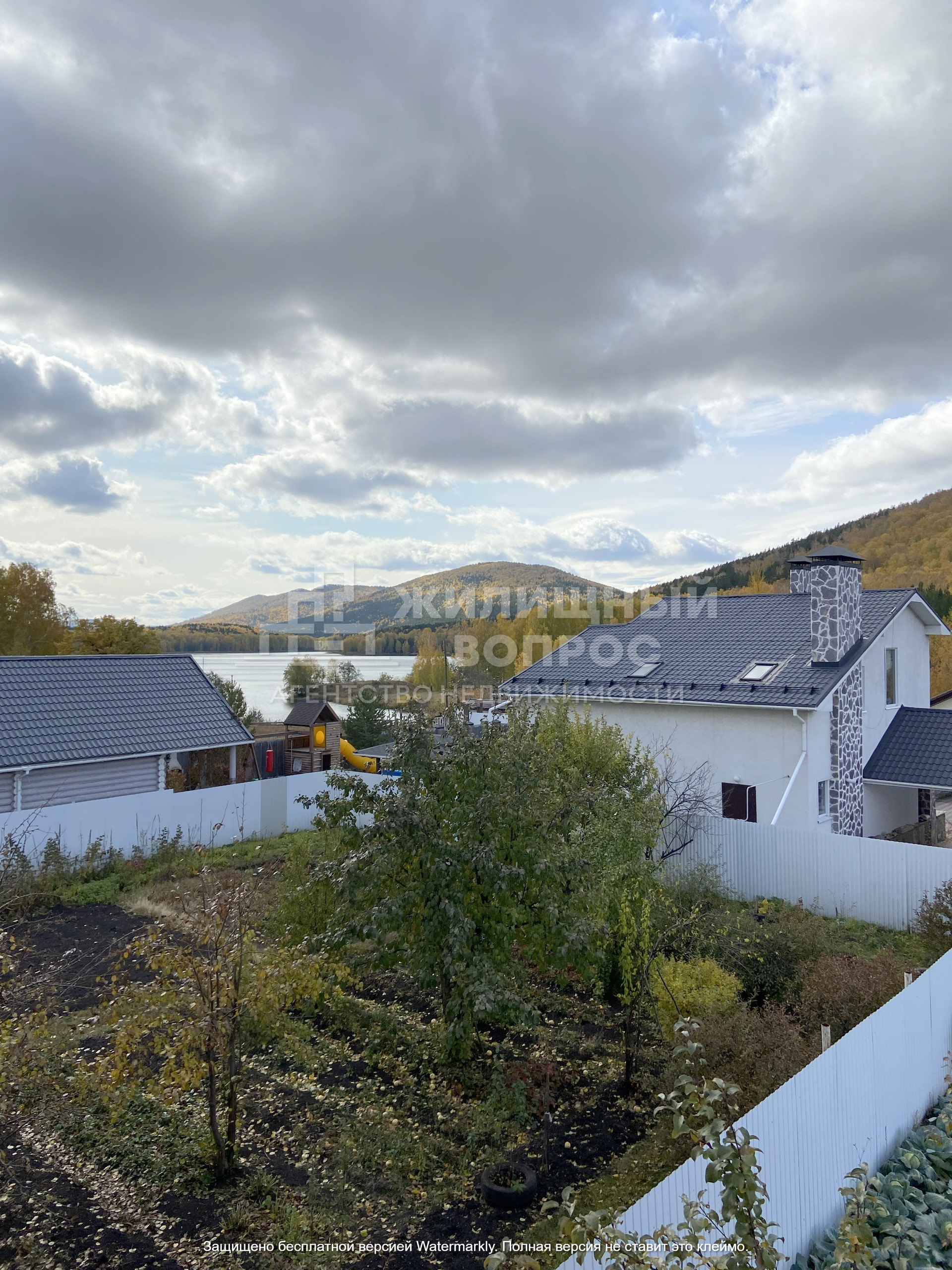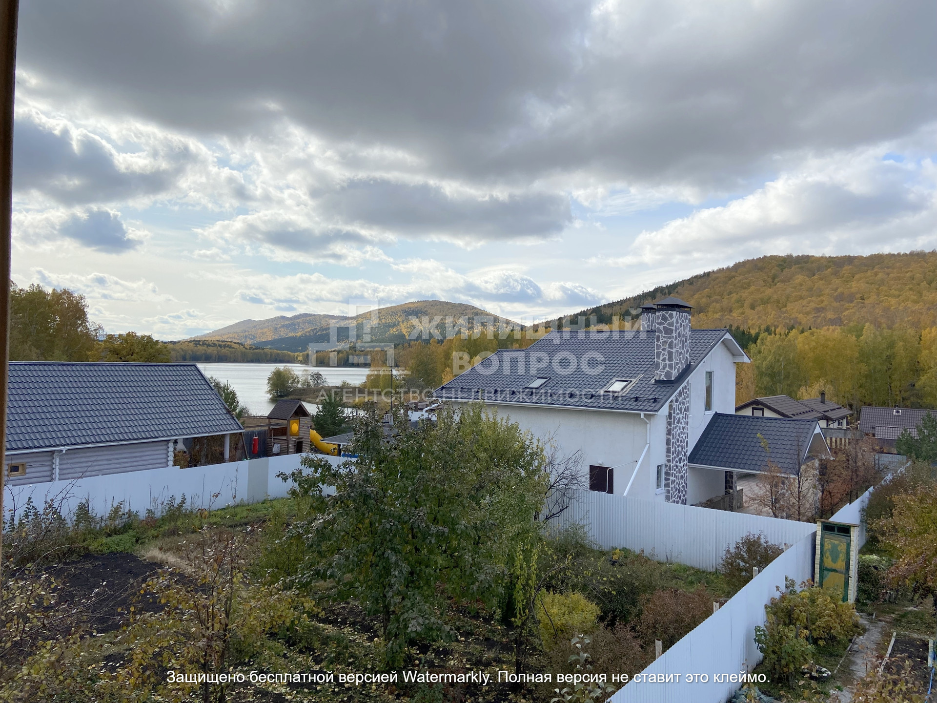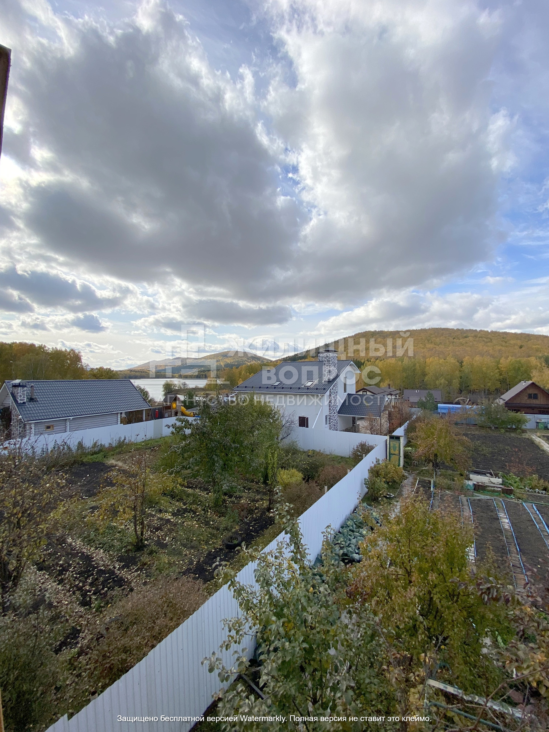Садовый дом построен из кирпича в 2 этажа: на первом этаже располагается прихожая, баня и гараж; на втором этаже зал и кухня; так же имеется мансарда, которую можно оборудовать по жилую комнату, из которой открывается прекрасный вид на горы и озеро.