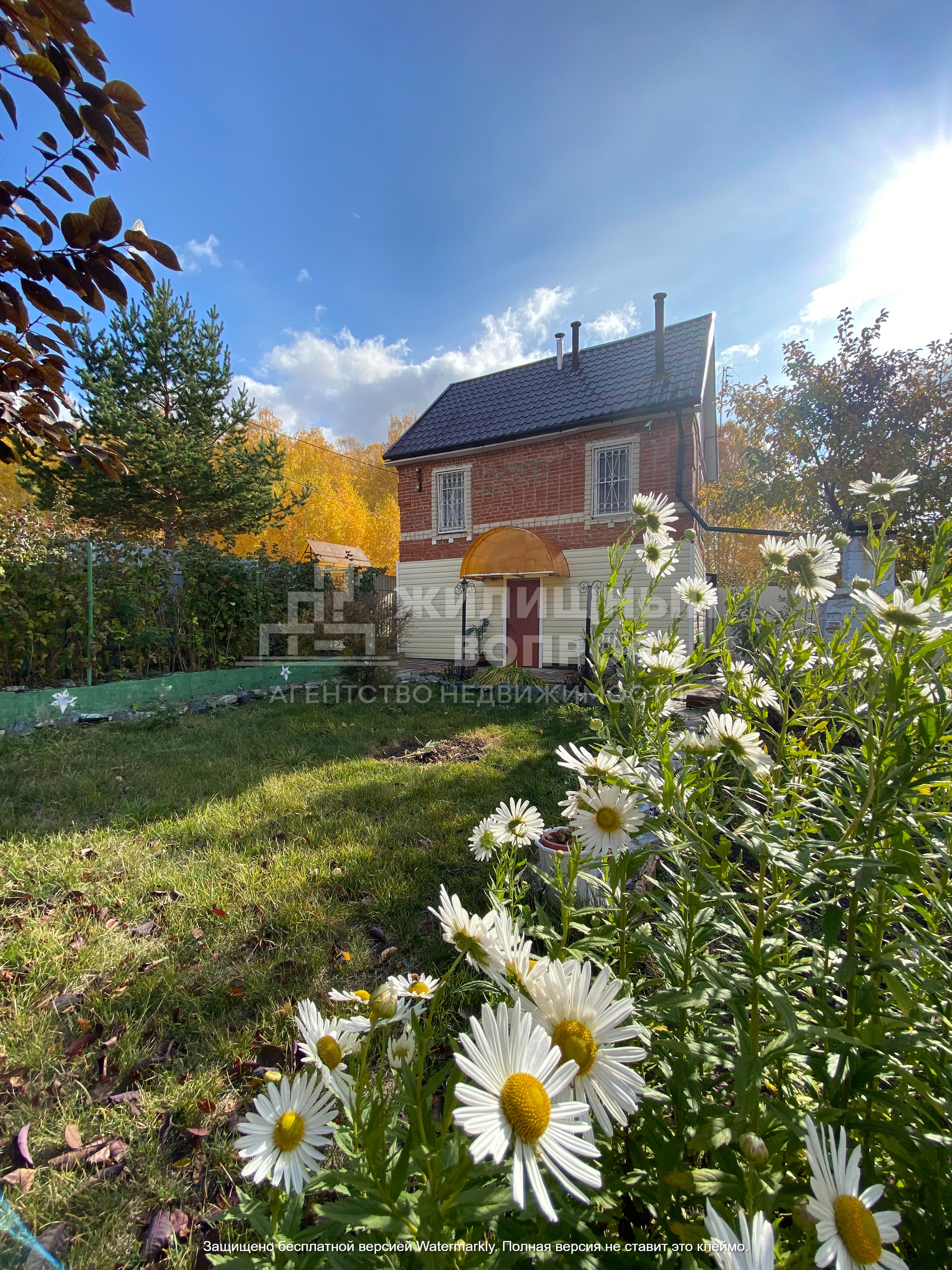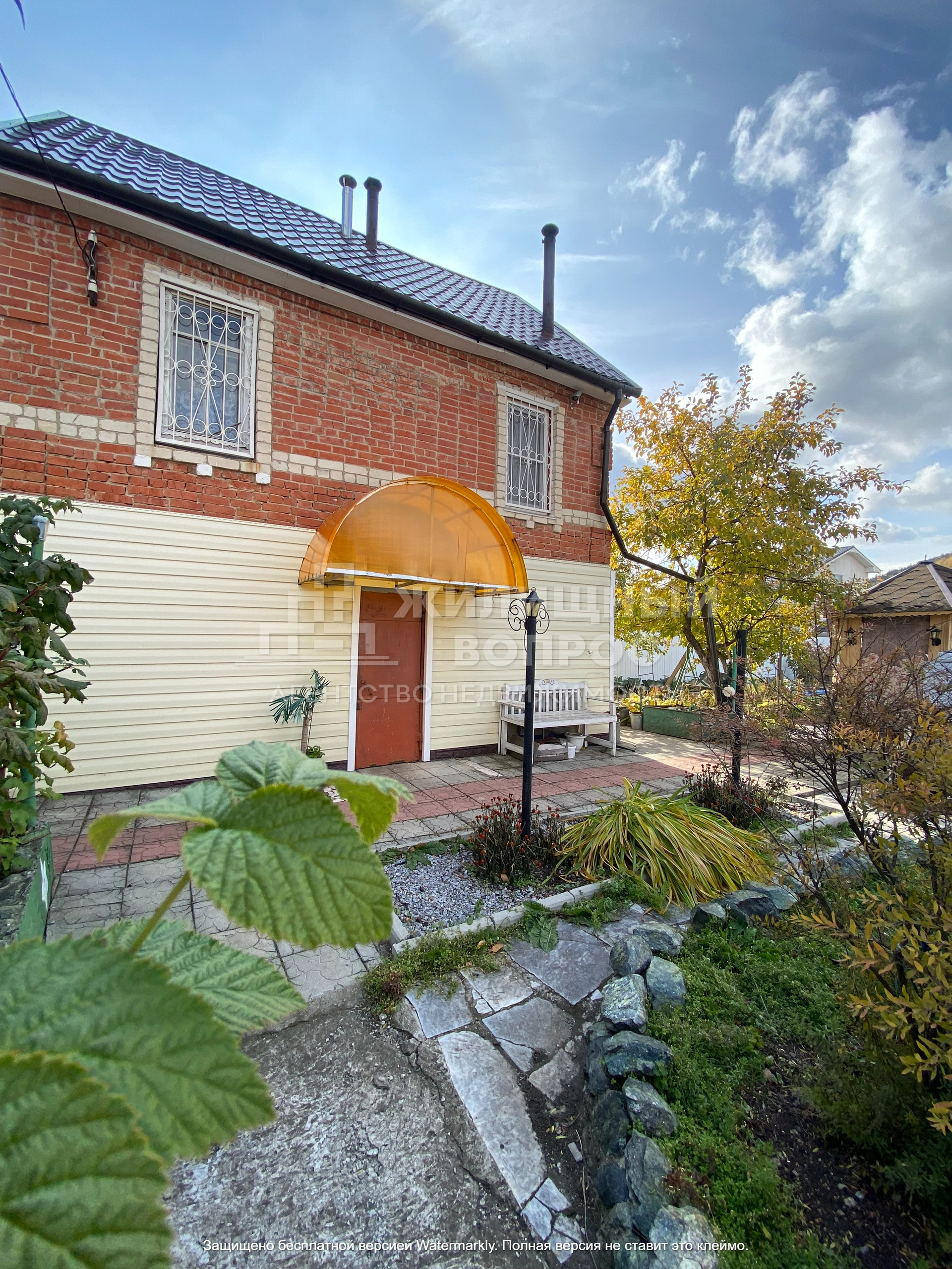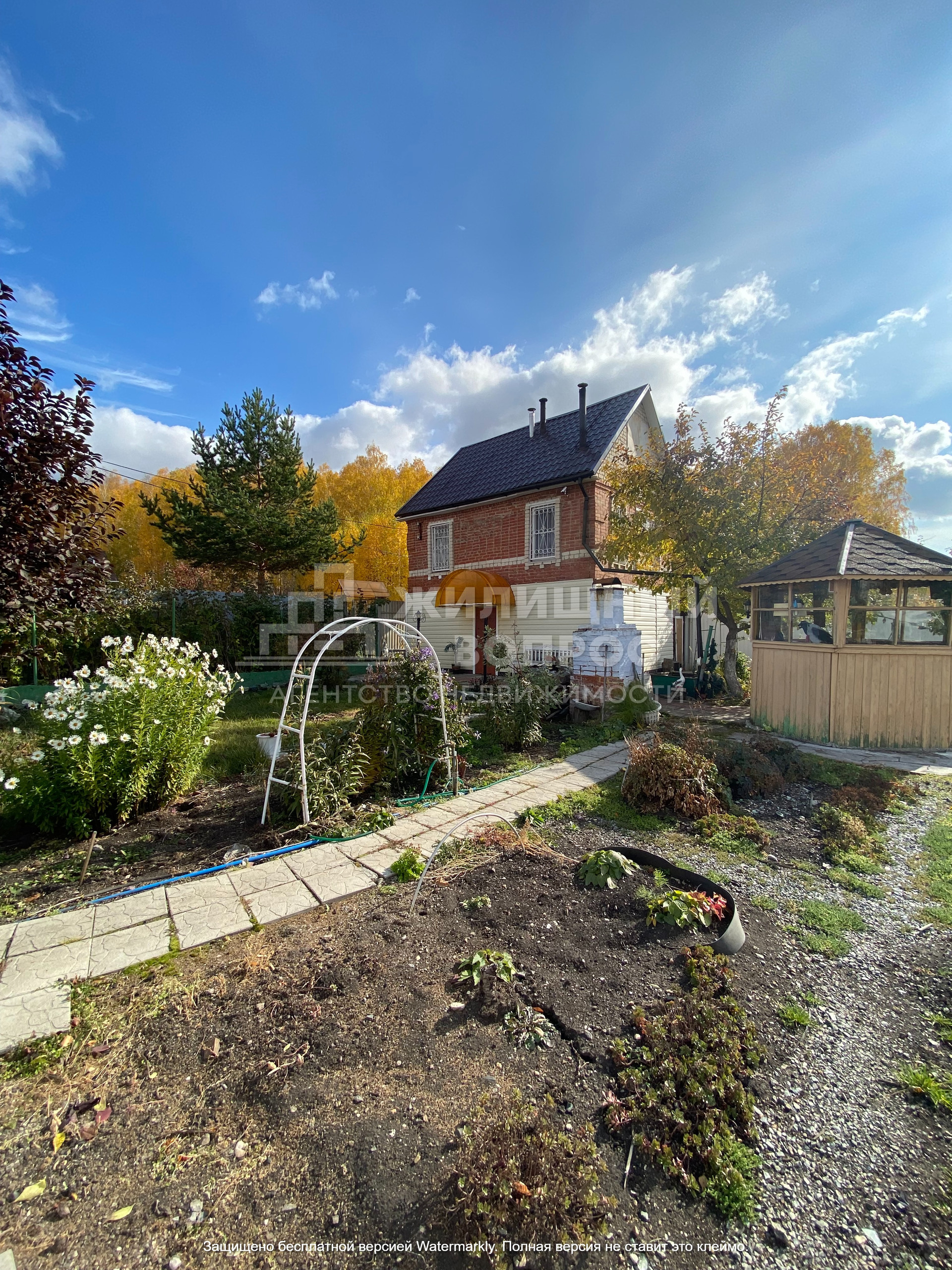 Садовый дом построен из кирпича в 2 этажа: на первом этаже располагается прихожая, баня и гараж; на втором этаже зал и кухня; так же имеется мансарда, которую можно оборудовать по жилую комнату, из которой открывается прекрасный вид на горы и озеро.
