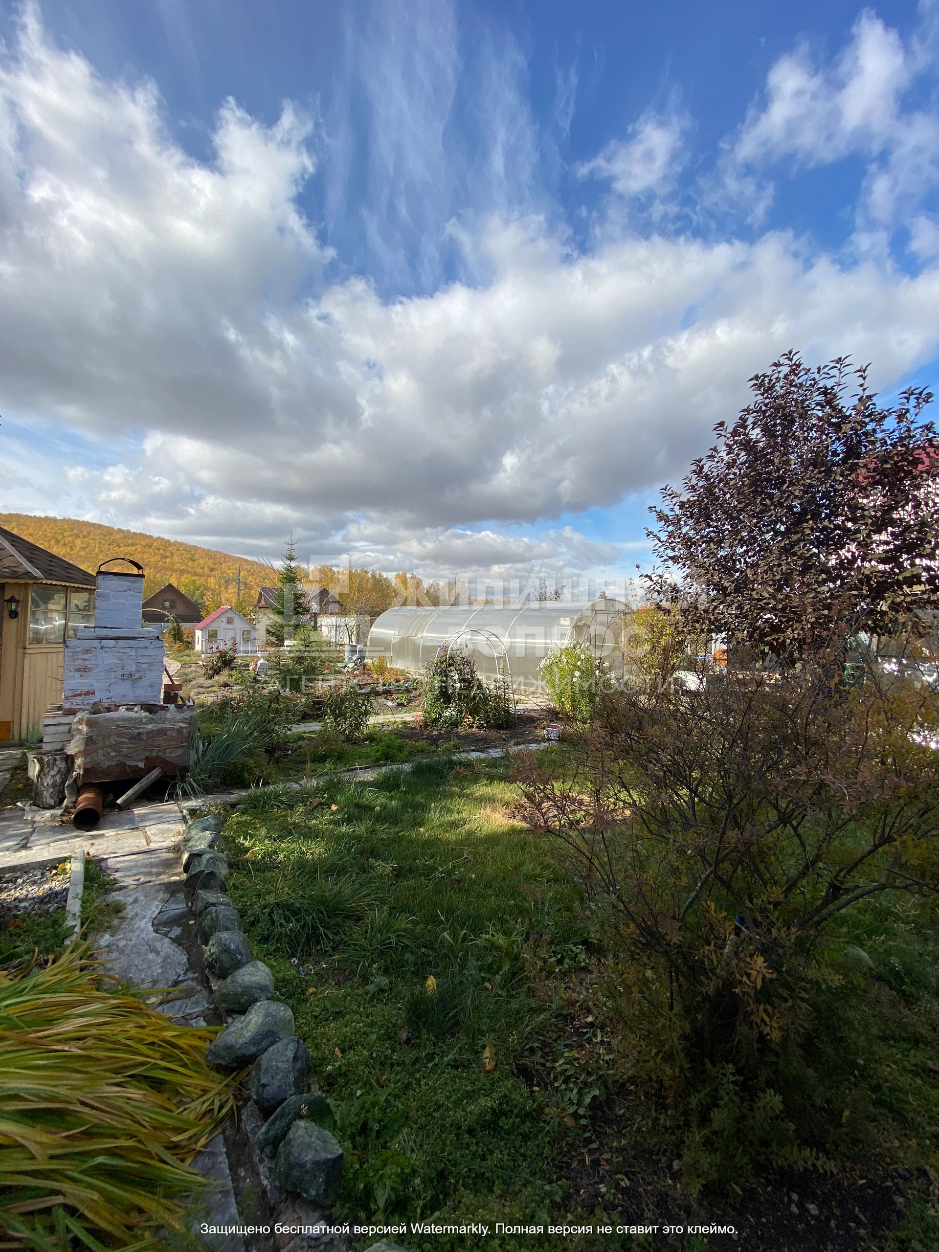 Огромная ухоженная территория участка с всевозможными насаждениями: Амурский орех, Лещина (фундук) ,жимолость, виноград разных сортов, чернослив, необычная красная черемуха, пихта ,сосна мугус, вишня, слива, обалденная груша, яблони, смородина и многое другое. Все посажено с любовью и заботой.