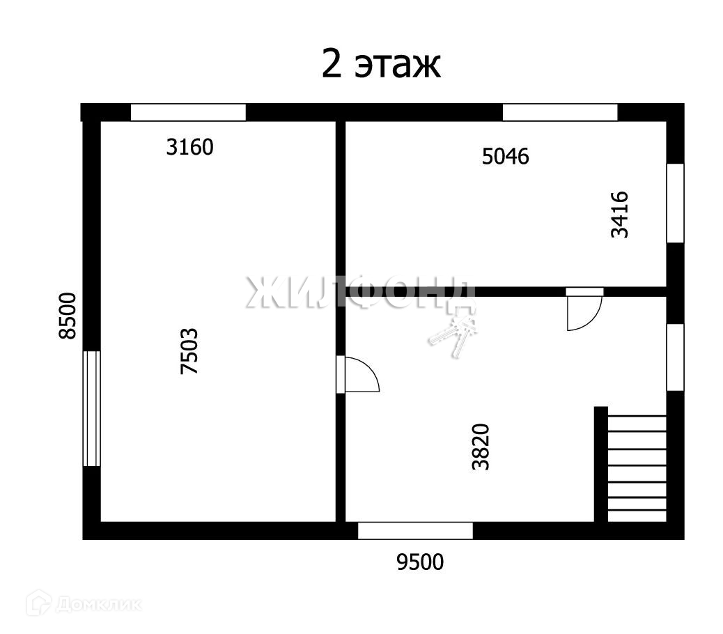 На 2 этаже - лестничный холл, 2 спальни 12 и 18 кв м.
