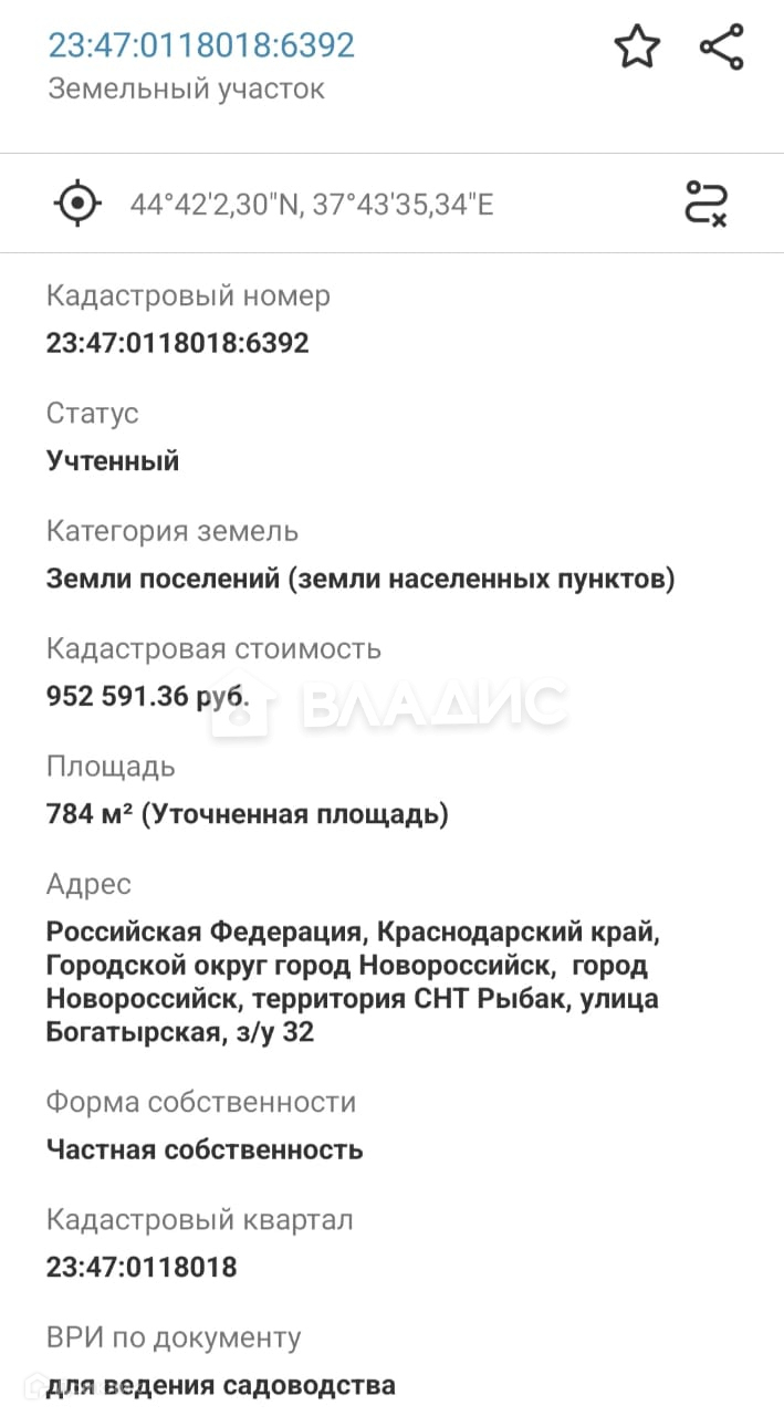 ● Кадастровый номер - 23:47:0118018:6392