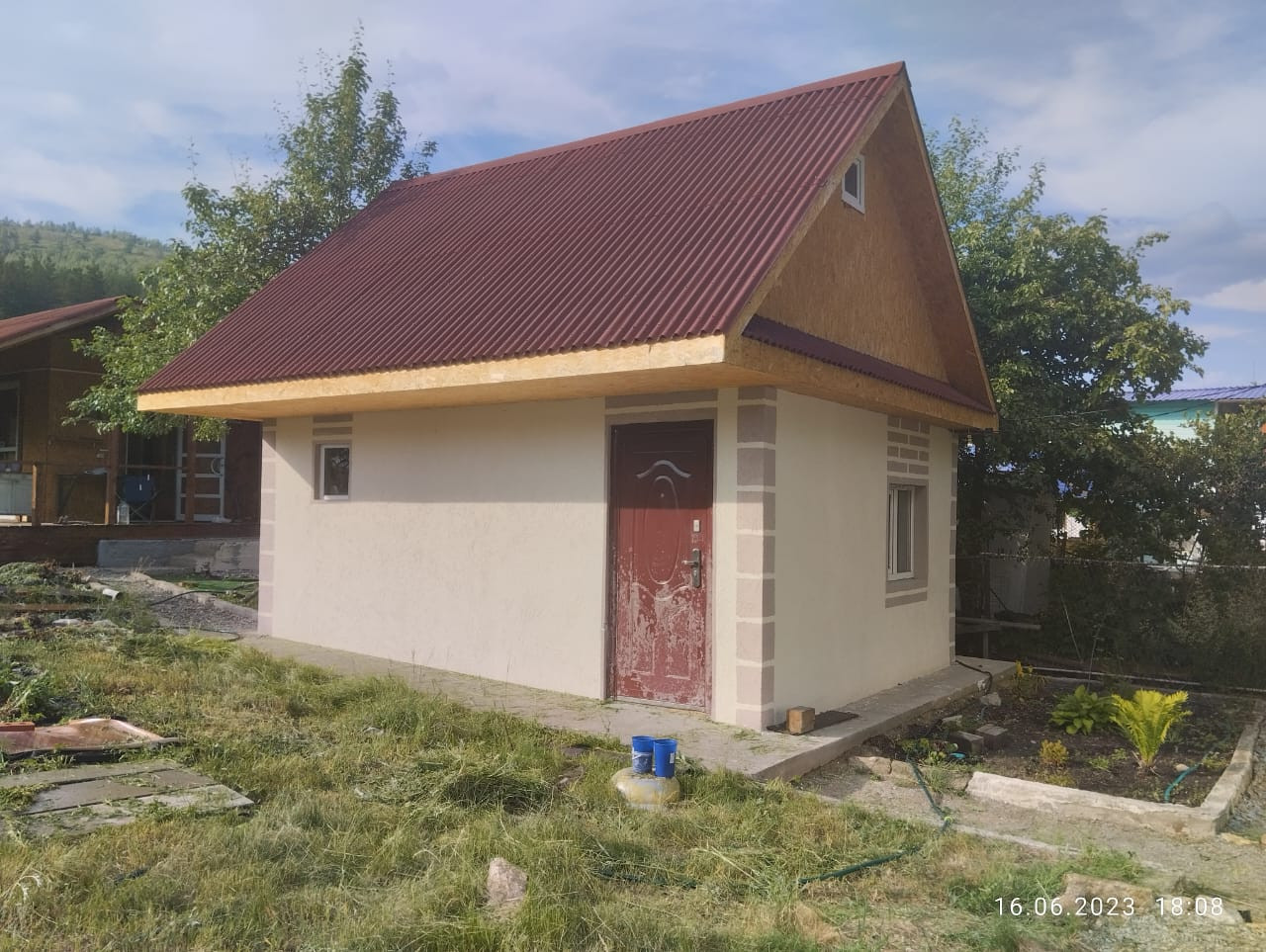 В саду декоративные кусты, цветы, груша, яблоня.  Подача воды каждый день, с утра до вечера. Взносы в год около 2000. Имеется новый дом, внутри под чистовую отделку, осталась покраска и  наклеить обои, общей площадью 36 кв.м.. Второй этаж мансардный.  Есть спальное место. Первый этаж комната 12 кв.м. с  печкой. Дом каркасный, утеплен, внутри из шлакоблоков.   Есть оборудована душевая кабина с подогревом воды, так же имеется беседка наполовину  крытая, используется как  летняя кухня, беседка большая с терассой, зоной отдыха, общая площадь 40 кв м..