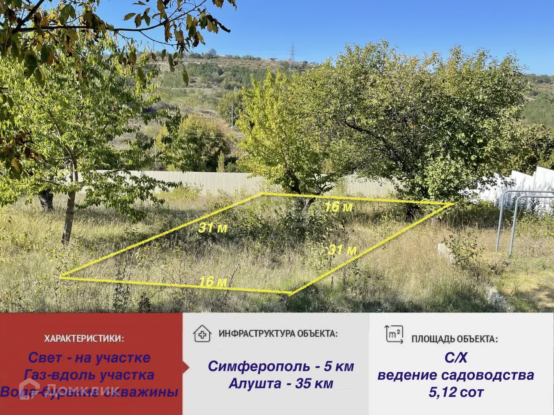 Площадь 5,12 соток. Категория земель: земли сельскохозяйственного назначения. Разрешенное использование: ведение садоводства.