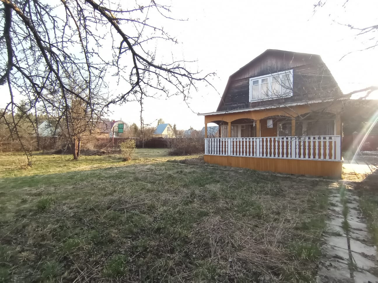 Небольшой уютный домик с тихом СНТ. В доме есть застекленная веранда, кухня, 2 спальни на первом этаже и 2 спальни на втором этаже.