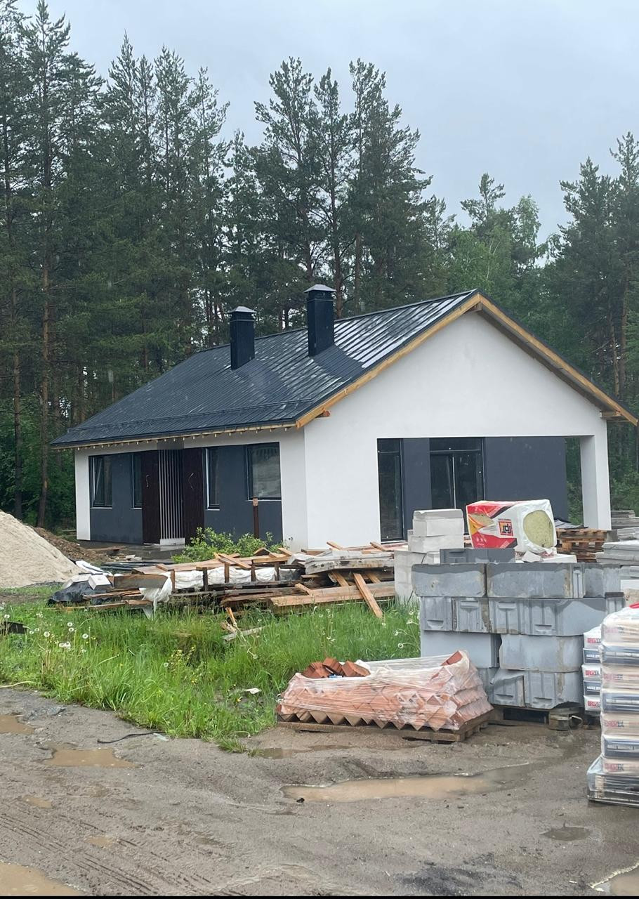 Конструктив дома: Стены газоблок, утеплитель 100 мм, Фундамент ростверк, сваи глубиной 2,5м, Кровля мягкая черепица Шингласс Ранчо, утеплитель 200 мм, Высота потолков 3,1