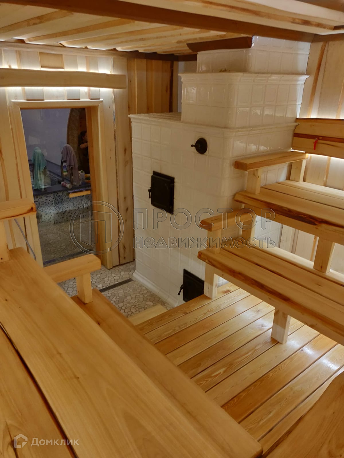 Баня 7х8м: профилированный 200мм «термобрус» (60мм дерево, 80мм экструдированный пвх, 60мм дерево) два этажа, санузел, душ, кровля металлочерепица, в парной русская изразцовая печь, чугунная топка, закладка чугуна 100кг и 100кг жадеит, стены парной облицованы липовой струганой необрезной доской 30мм, пологи 70мм липа, подиум лиственница. Водяные тёплые полы. Бассейн (купель) с подогревом с автоматической станцией фильтрации (кислород). Второй этаж спортзал, кондиционер.