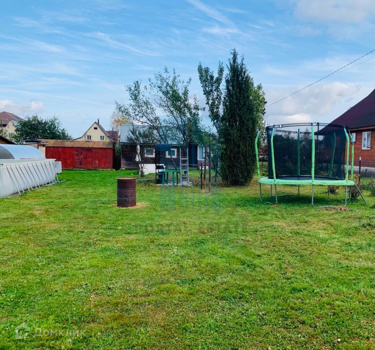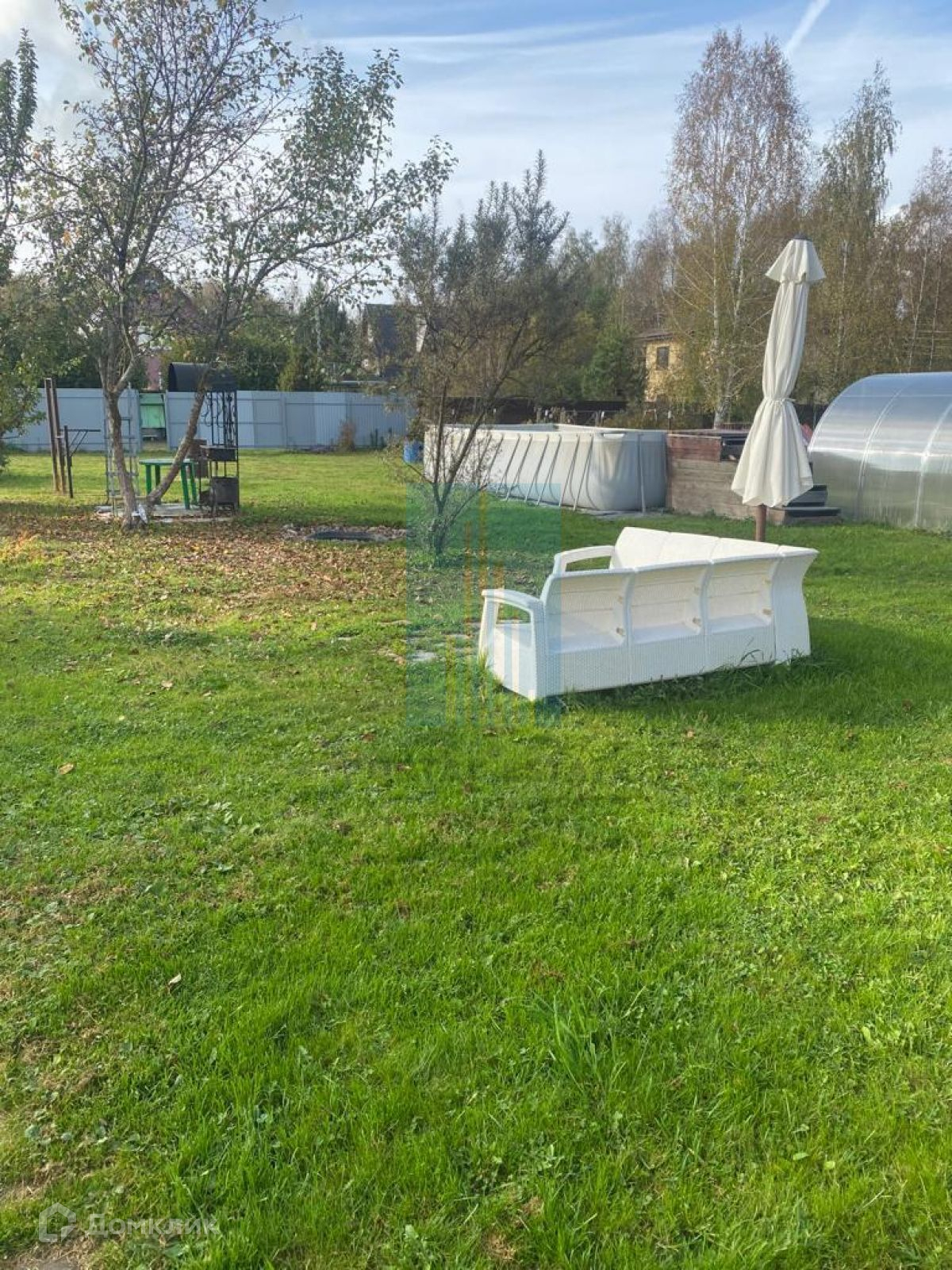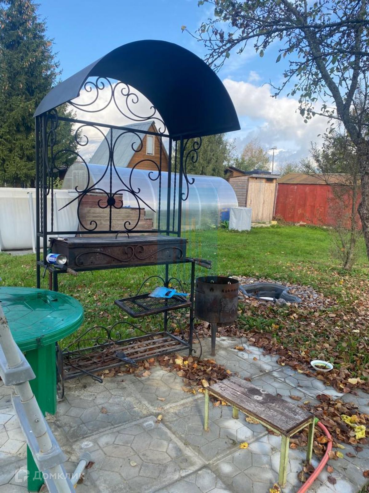 На участке есть теплица и бассейн.