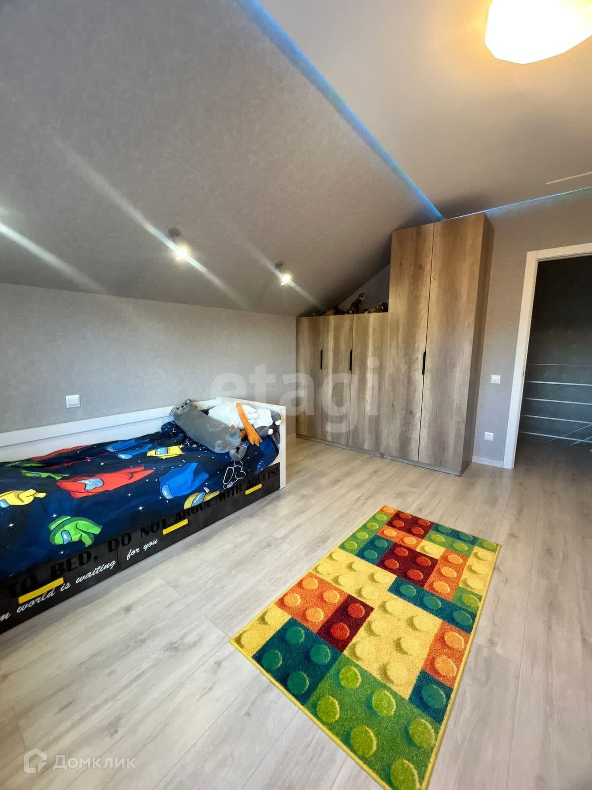 Во дворе вымощена тротуарная плитка, есть парковка на три автомобиля и автоматический откатные ворота. Для вашего питомца предусмотрен вольер. При въезде находится детская площадка и магазин, расположенные рядом с домом.