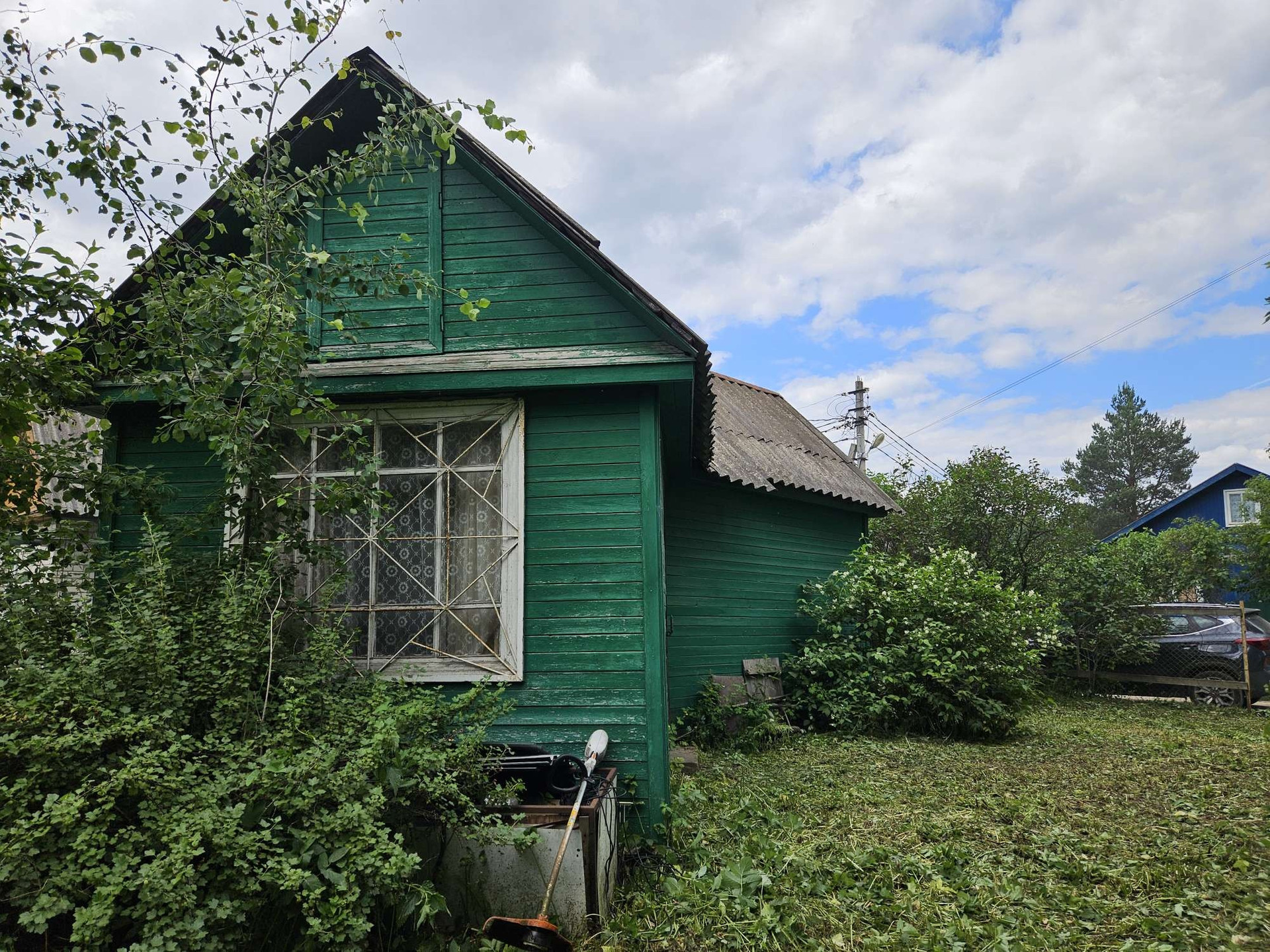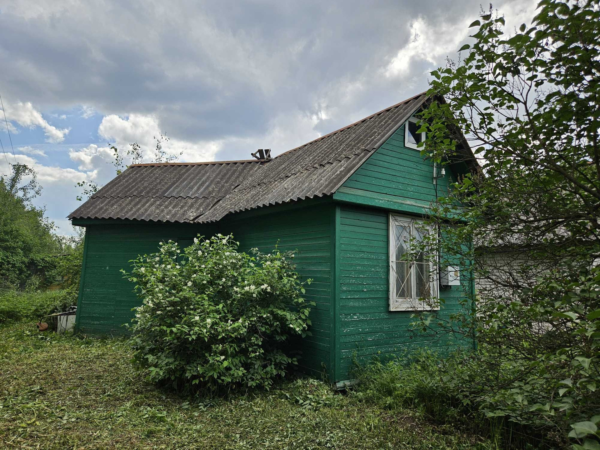 На участке расположен небольшой, но очень уютный щитовой дом (две комнаты), погреб. Также имеется летняя кухня, туалет.