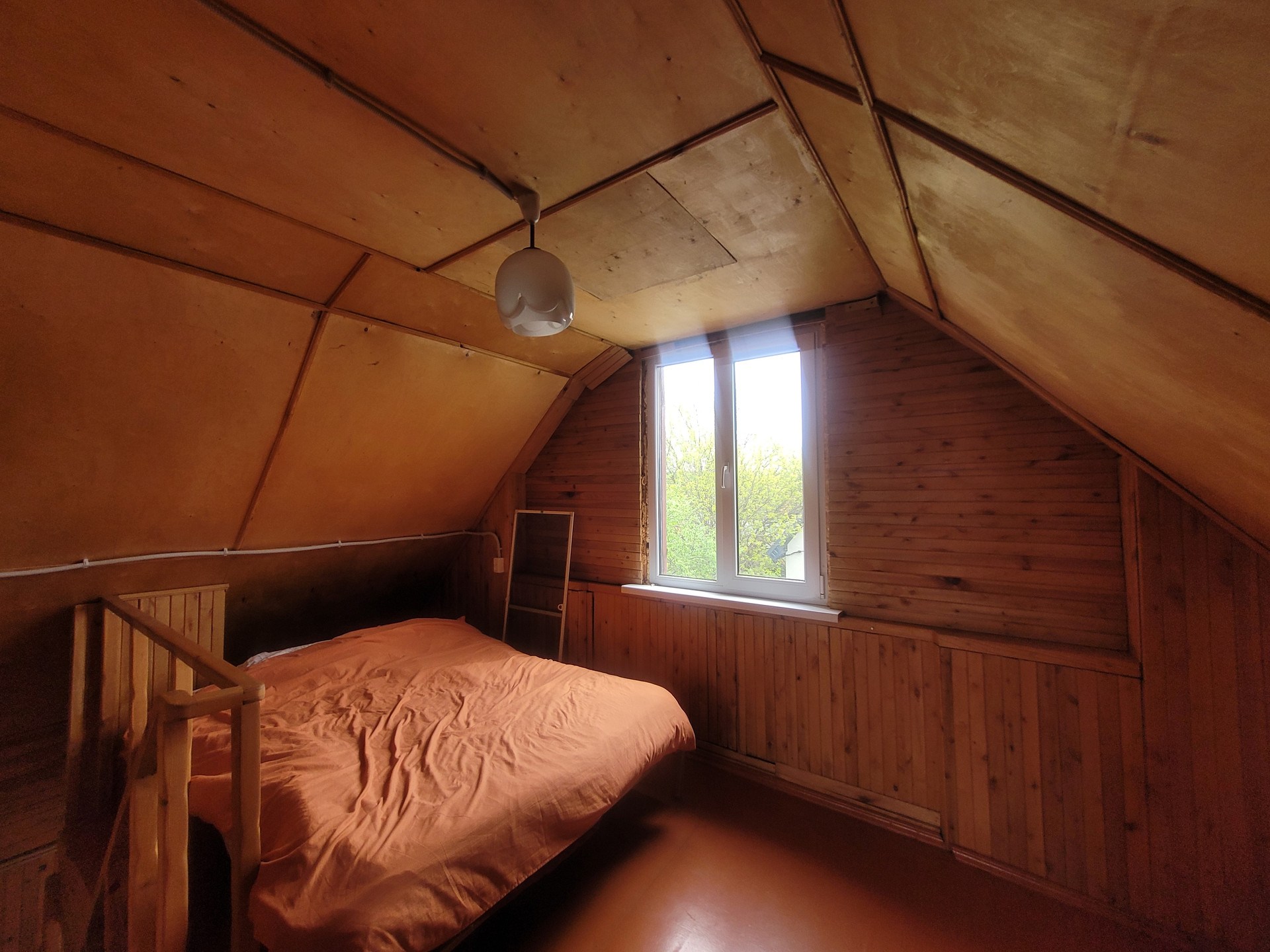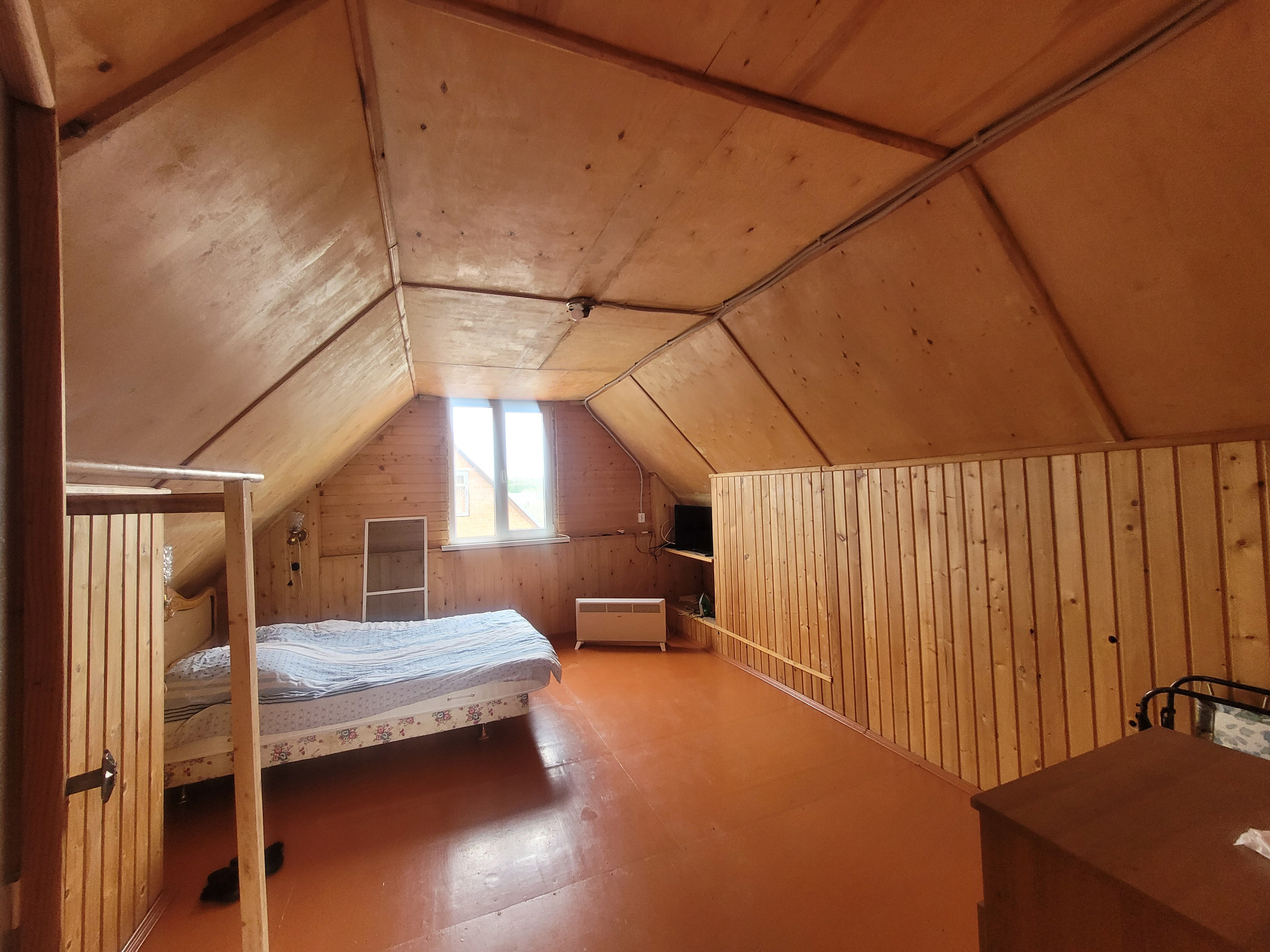 В доме есть большая кухня и отдельная гостиная с настоящим дровяным камином, износ которого совсем минимальный и составляет около 2%, на втором этаже две просторные спальни. Дом можно использовать и для круглогодичного проживания, используя электрические конвекторы, так же в течении 1-2 лет планируется проведение газа по улице, после чего цены на дачные участки существенно вырастут.