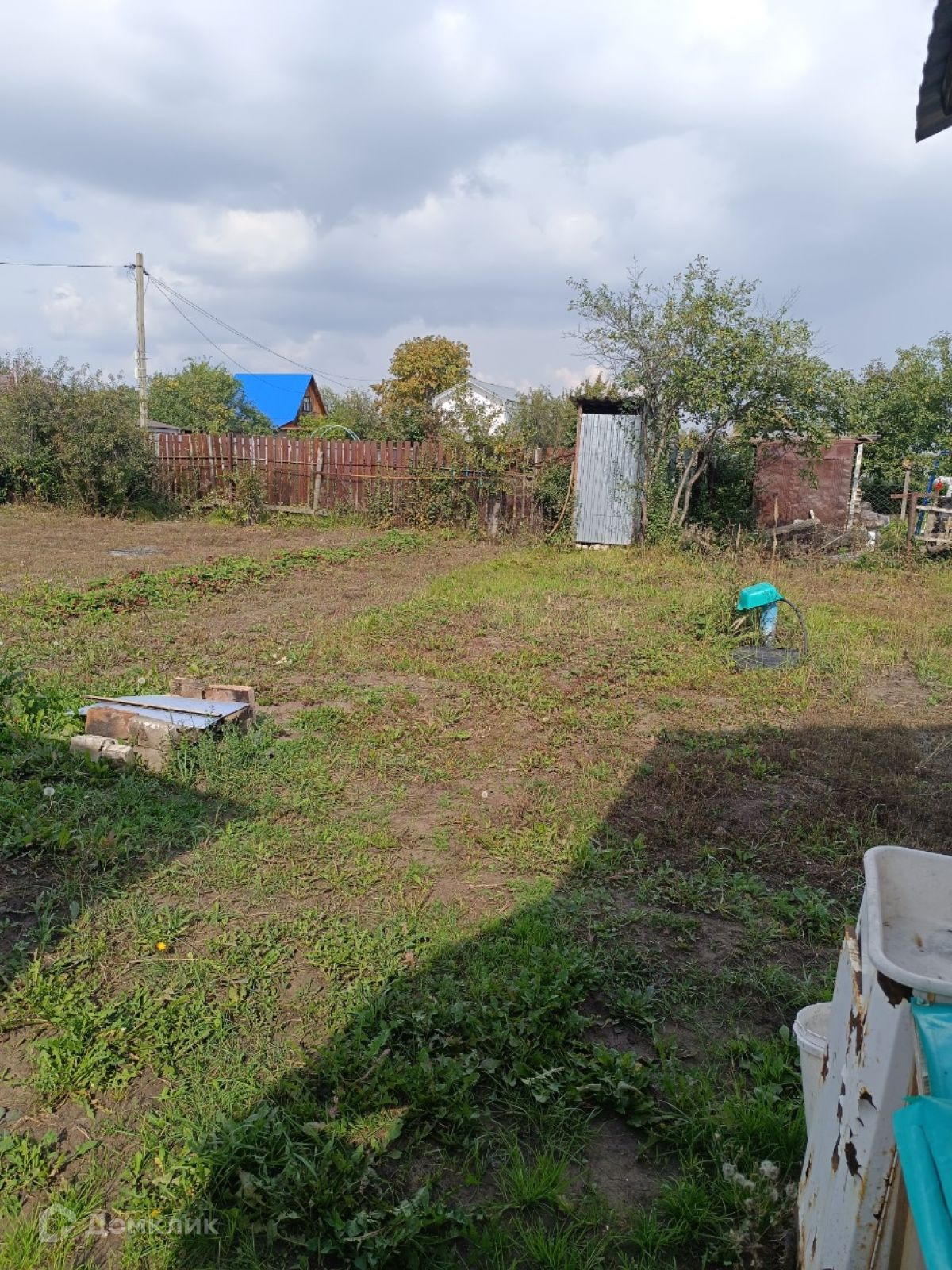 На участке имеется отличная баня, и есть сарай. Въехать можно с двух сторон, объединили два участка. Забор профнастил. В этом году ничего не сажали, есть туалет.