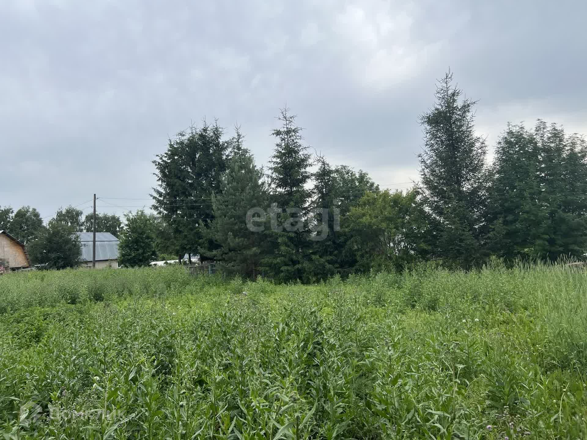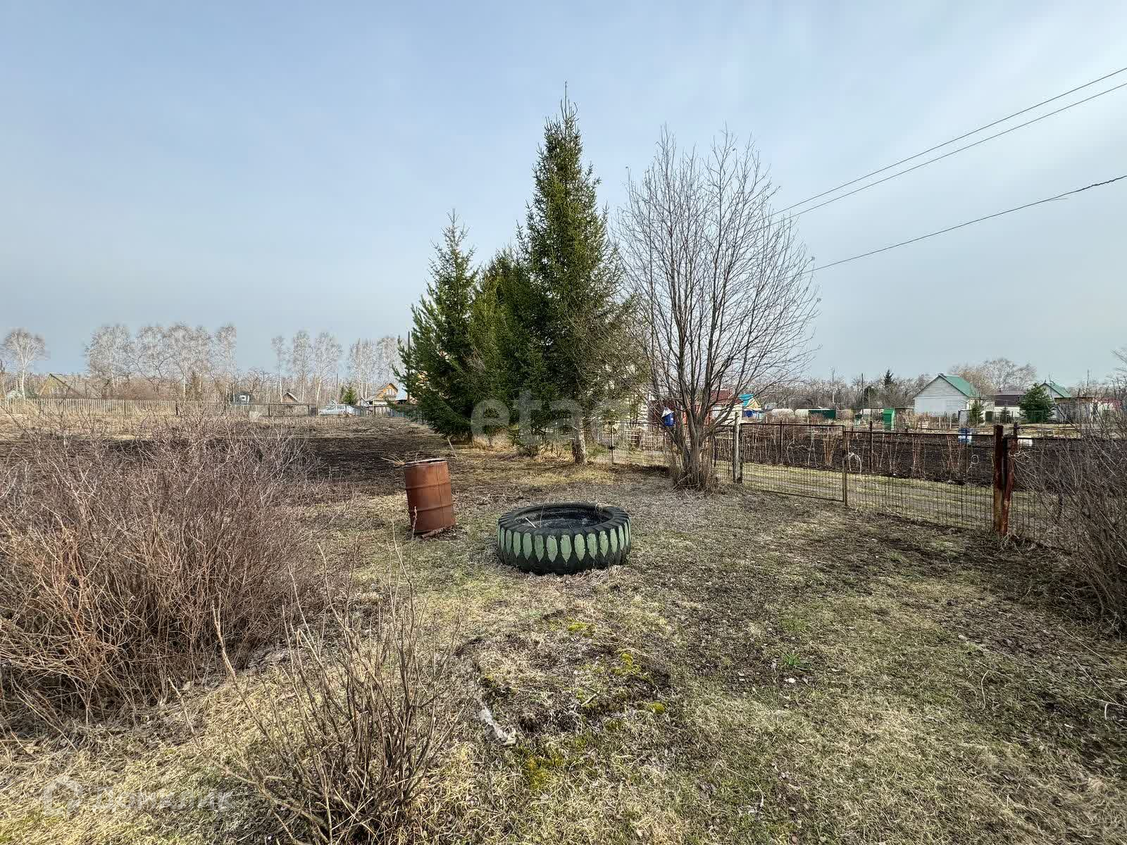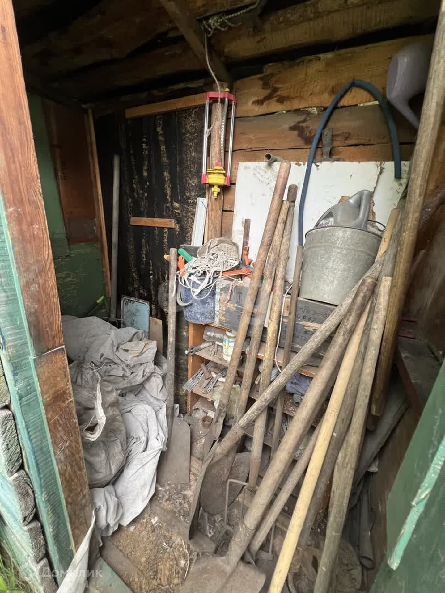 На участке располагаются две теплицы, постройка со стайкой для хранения садового инвентаря и туалетом. Также имеются плодoвые деревья и насаждения.