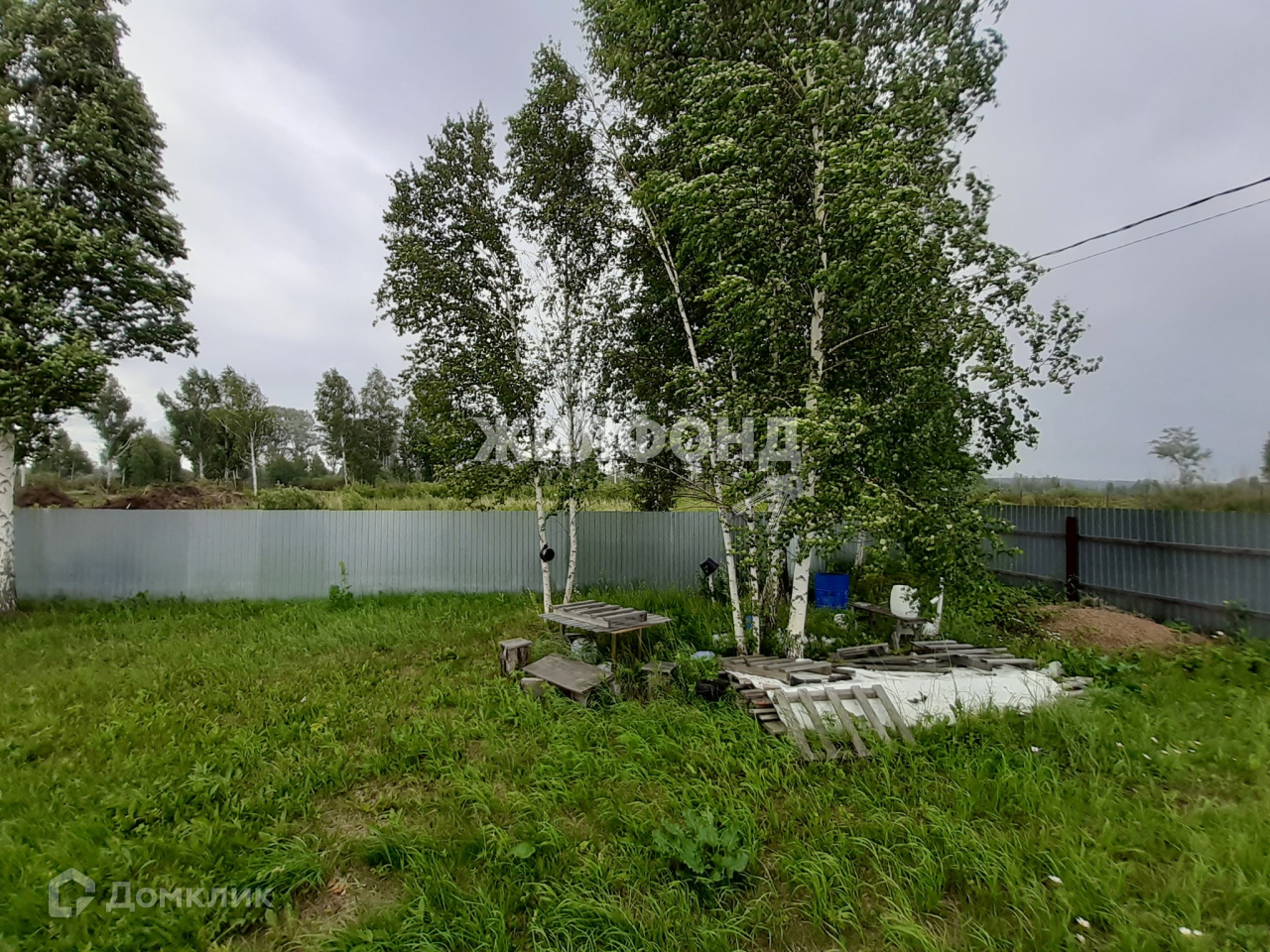 Участок огорожен профлистом и штакетником. Ворота для въезда автомобиля есть.