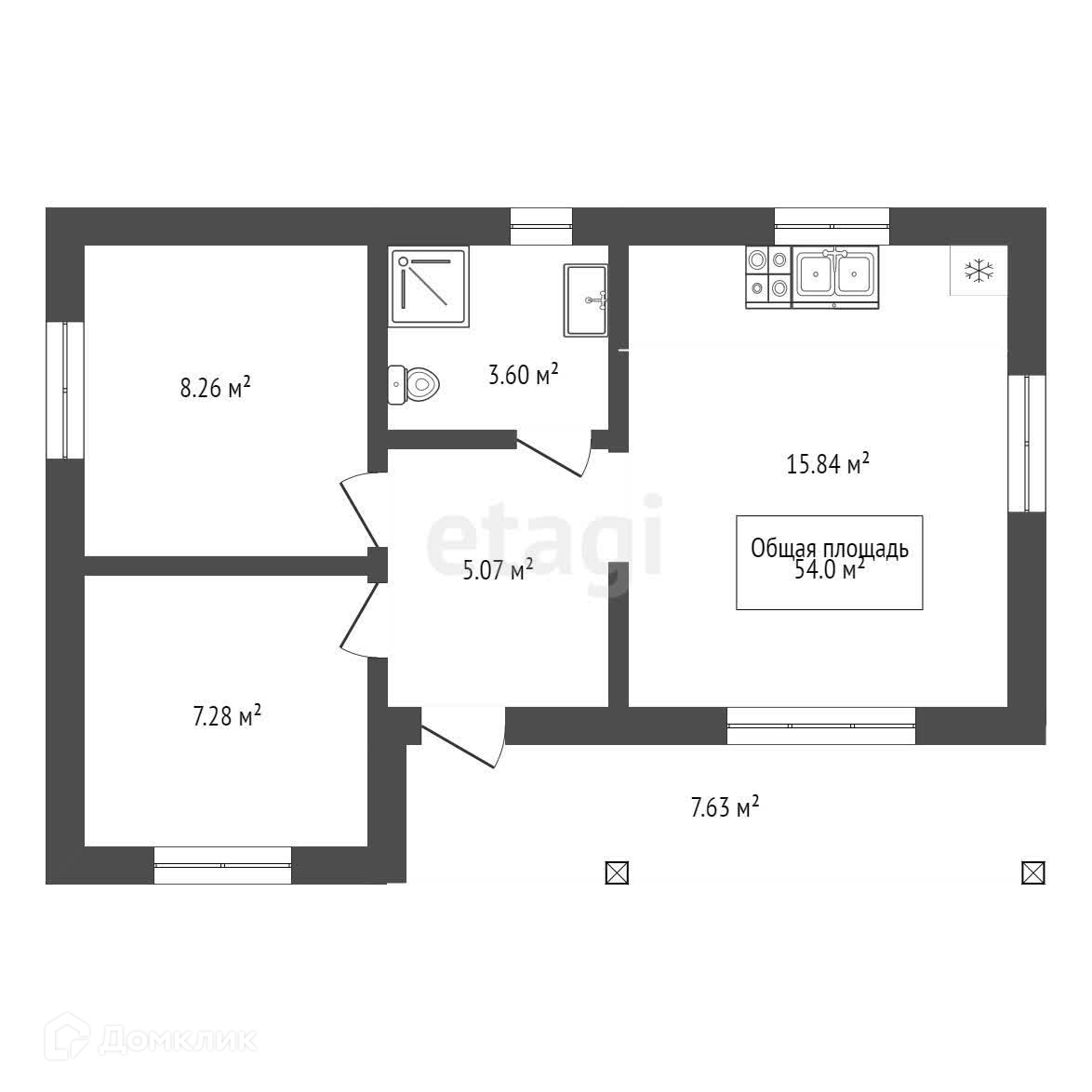 Общая площадь 54 м2