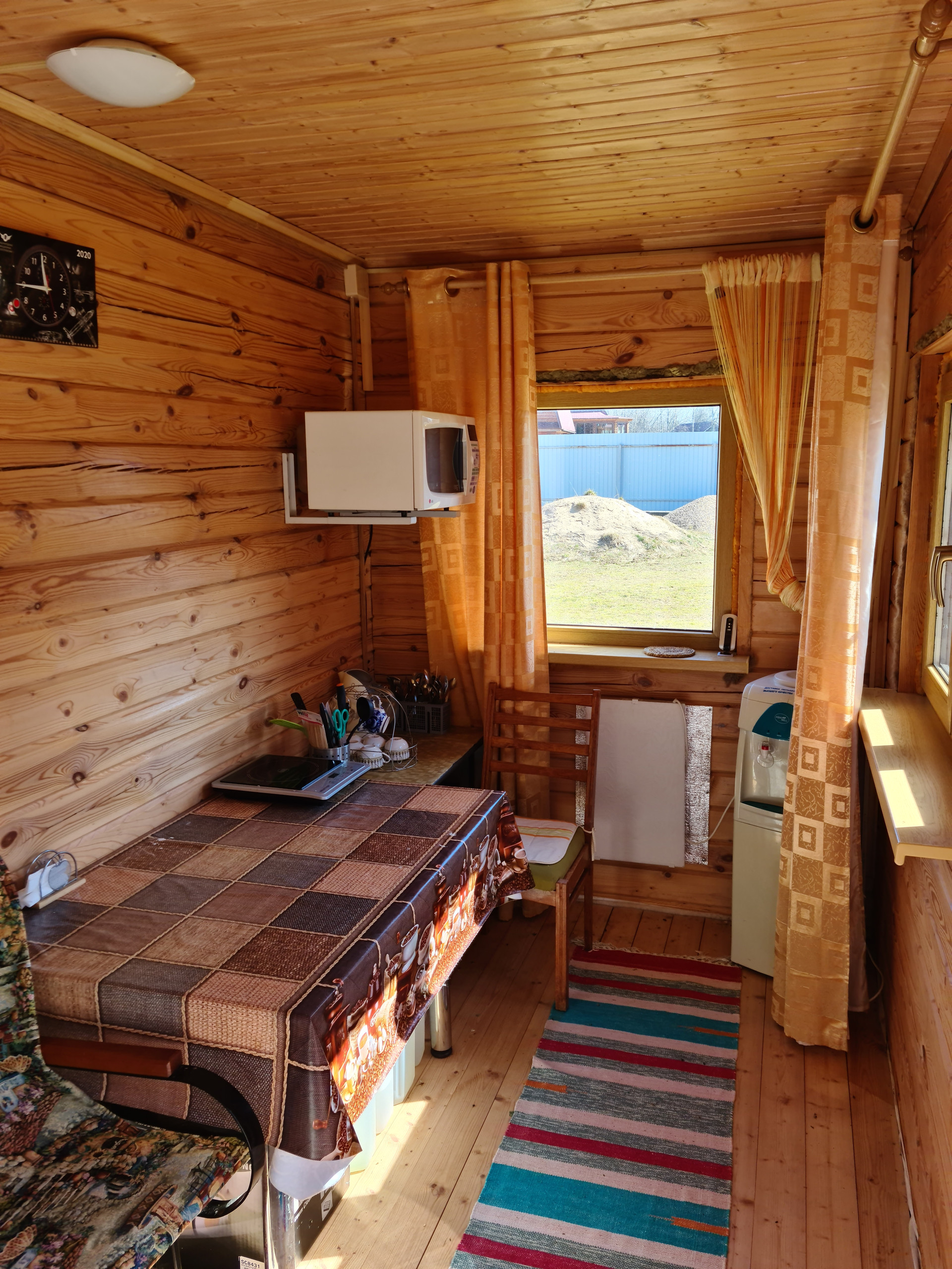 по периметру, веранда, оборудованная в кухонную зону с холодной и горячей водой. Дом оснащен электро-обогревом с термодатчиками. Первый этаж уникален расположением