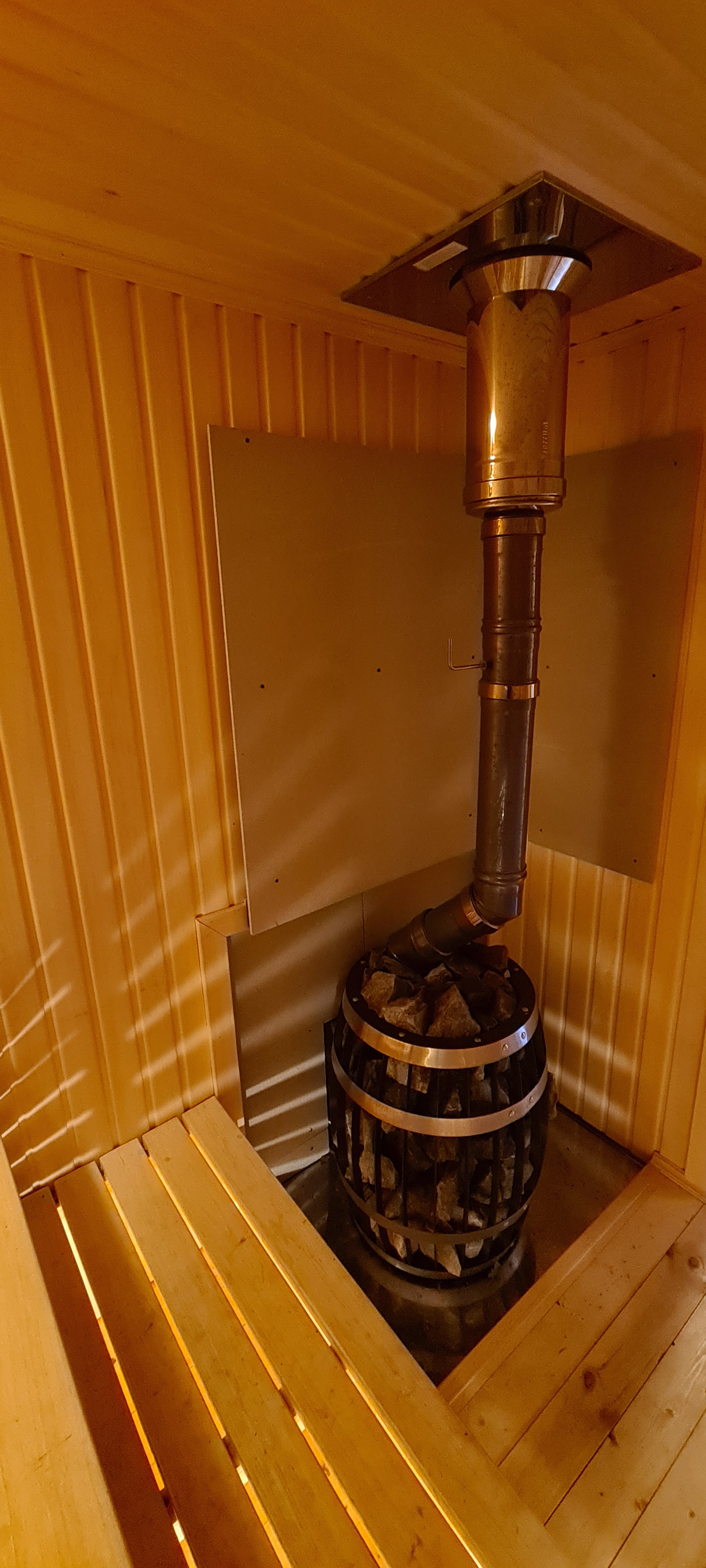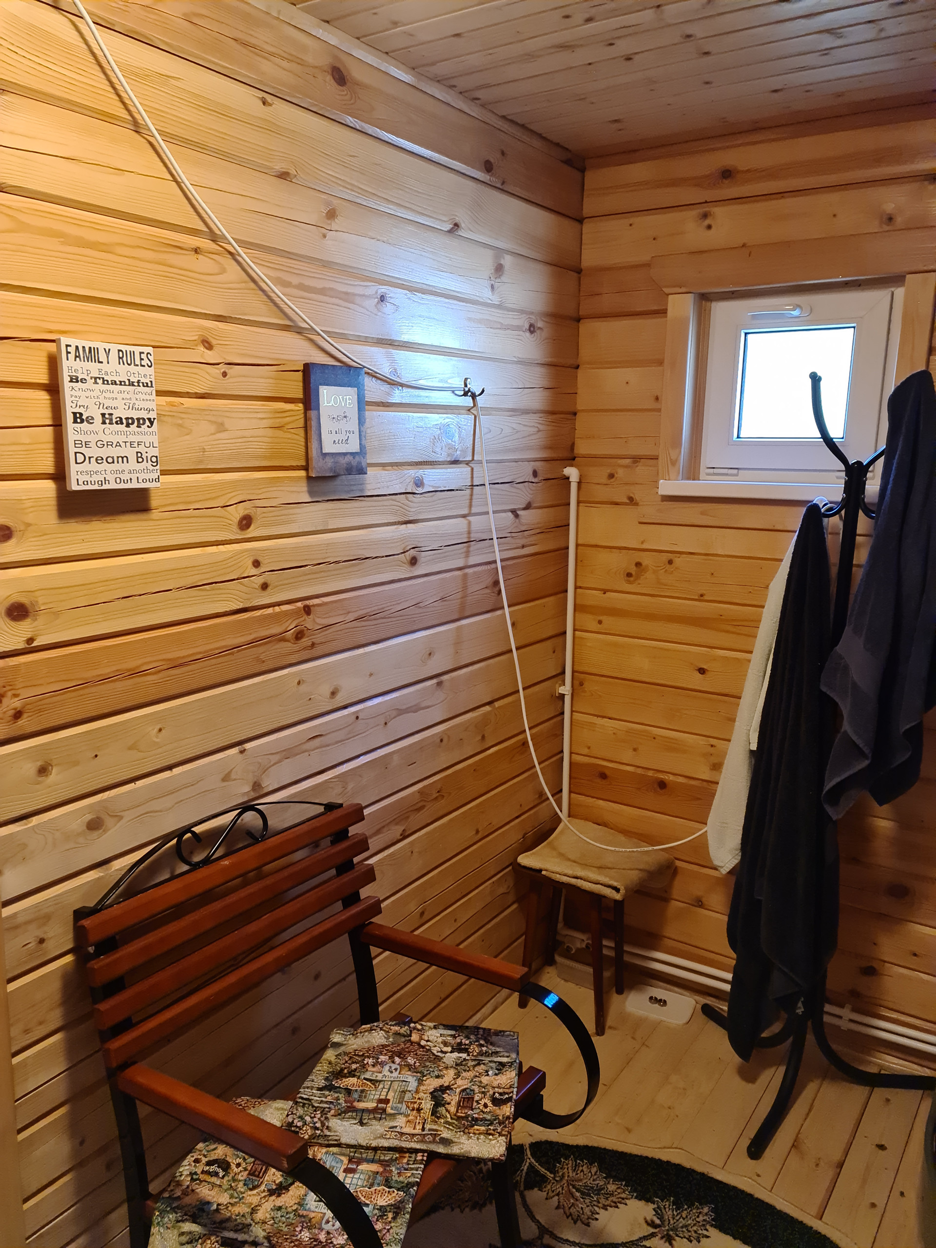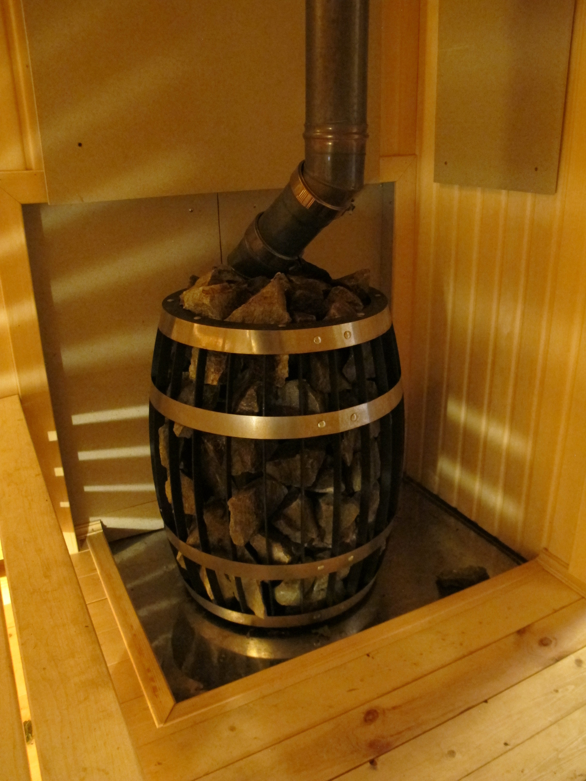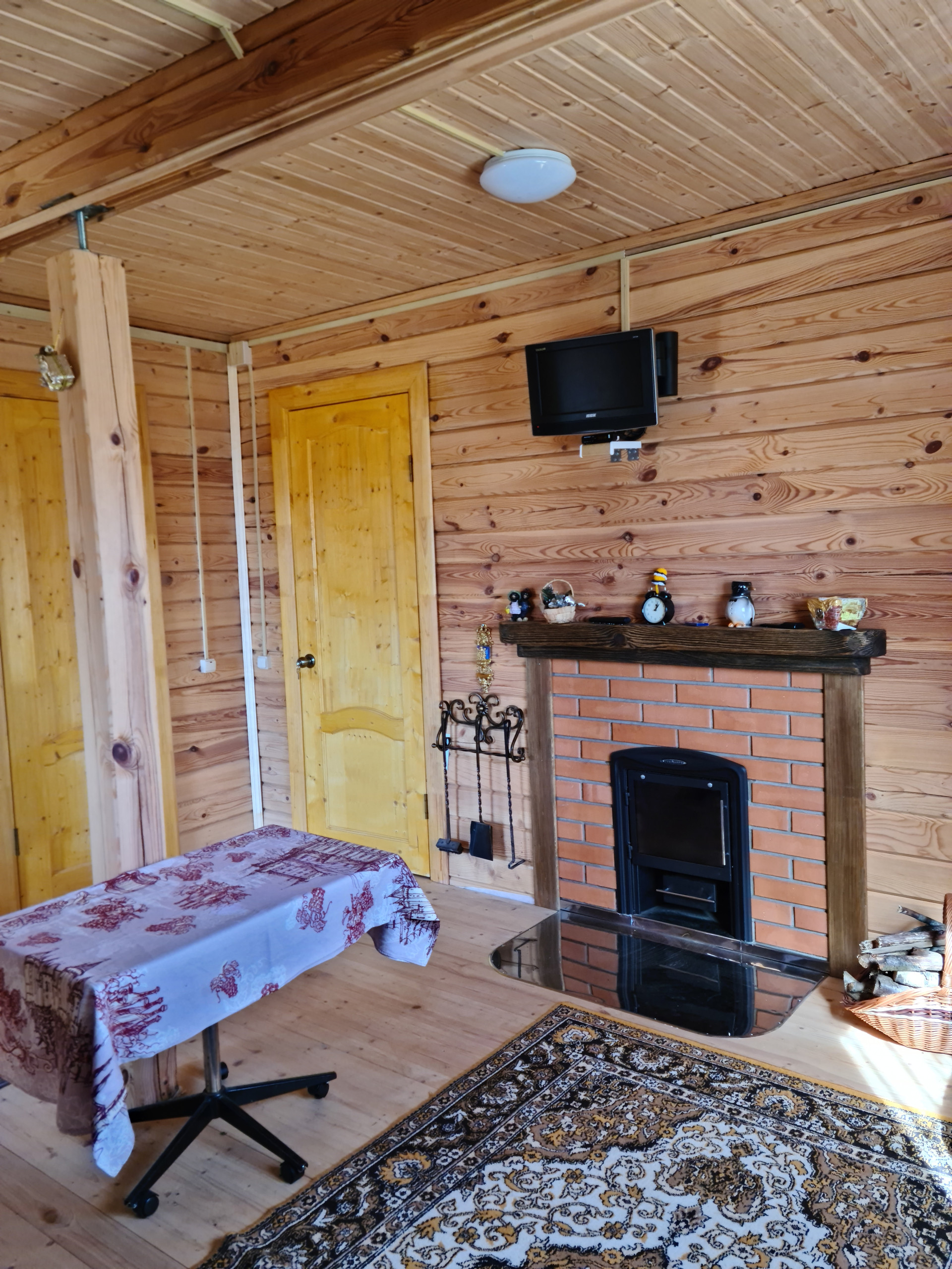в нем бани-сауны с печью-каменкой (и то, и другое дивной работы мастеров), которую можно использовать для обогрева всего дома. Просторная душевая кабина, санузел