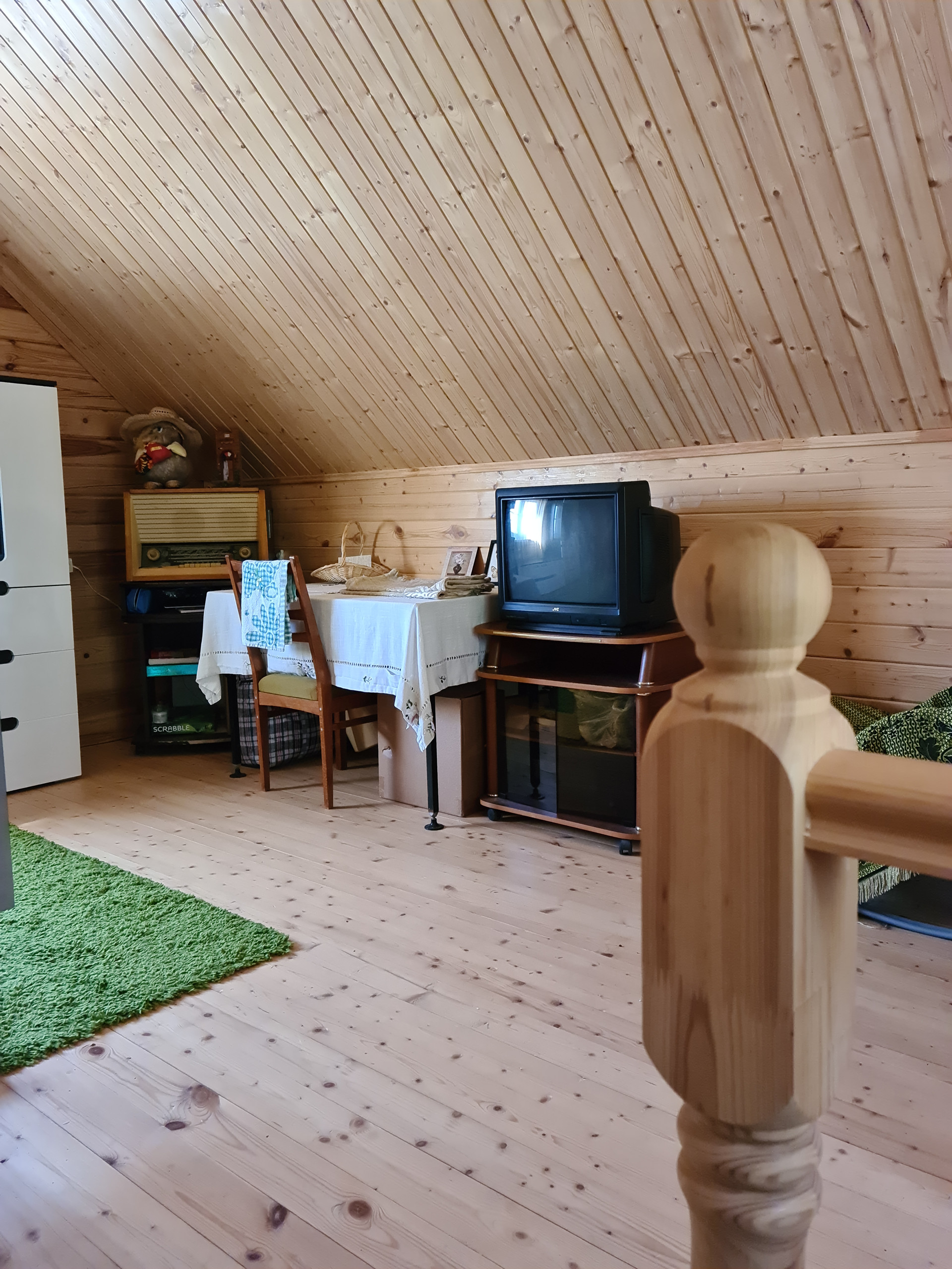 с автономной канализацией и комфортная гостиная с декоративным камином сделают Ваше проживание в доме желанным. Путь на второй, мансардный этаж лежит по шикарной, удивительным образом вписанной в интерьер, лестнице. Светлая, просторная комната 2 этажа с двуспальной кроватью и высоким потолком, что венчает весь дом, будет Вашим любимым местом проведения досуга! Пластиковый стеклопакет окон декорирован под дерево. Электричество 15 кВт. Водоснабжение летнее из колодца (глубина – 13 колец или 11.7 м).