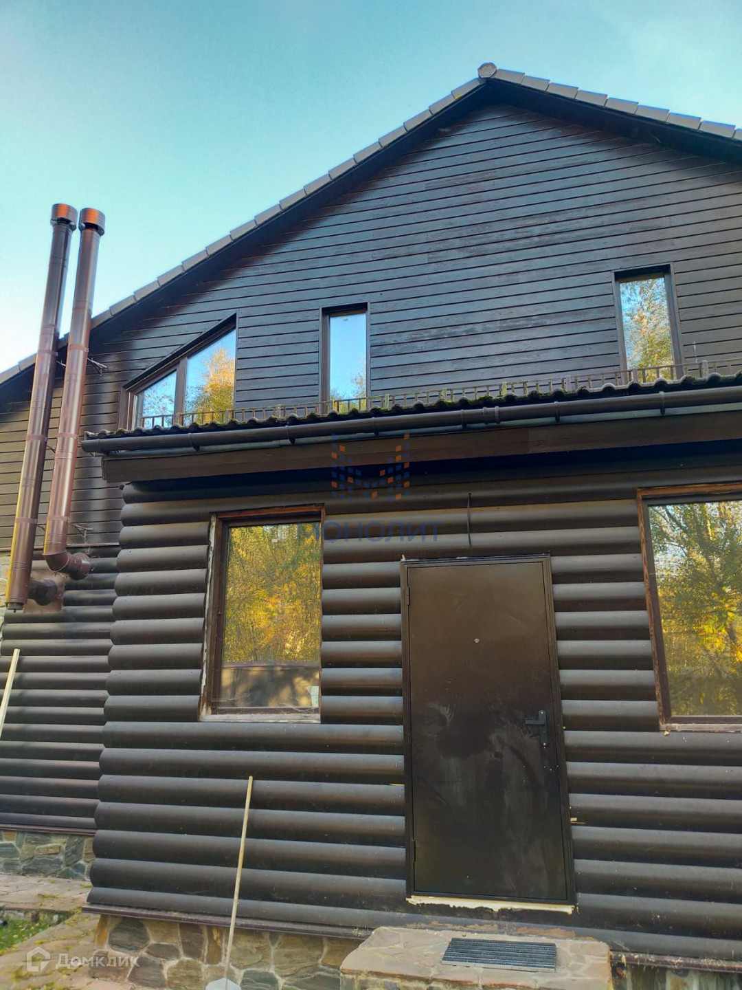 -Снаружи дом обшит блокхаусом и имитацией бруса из лиственницы