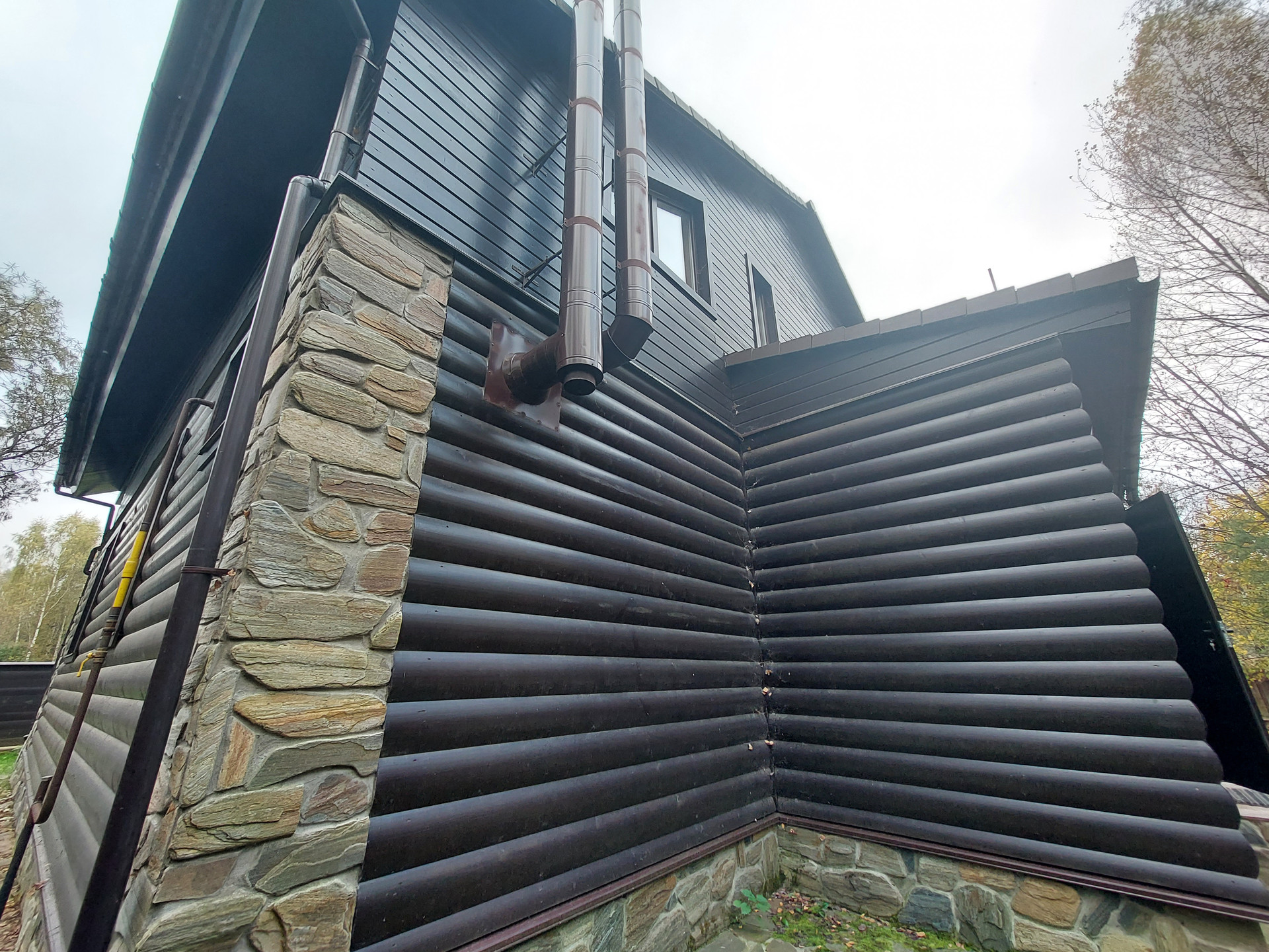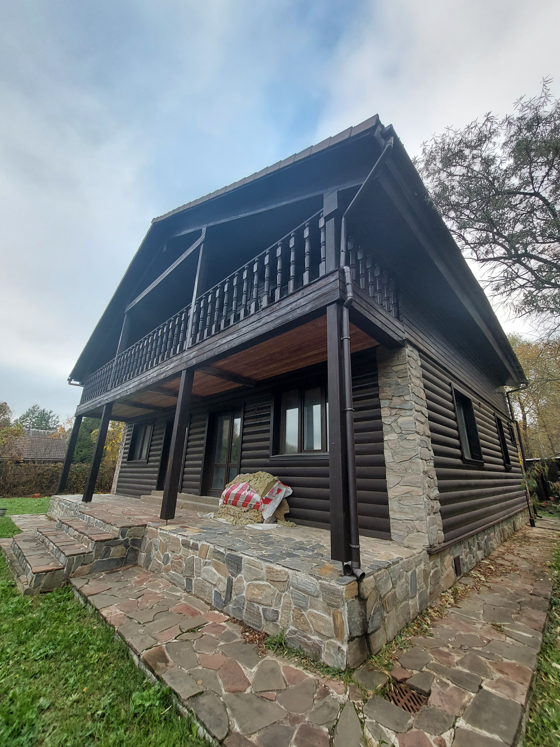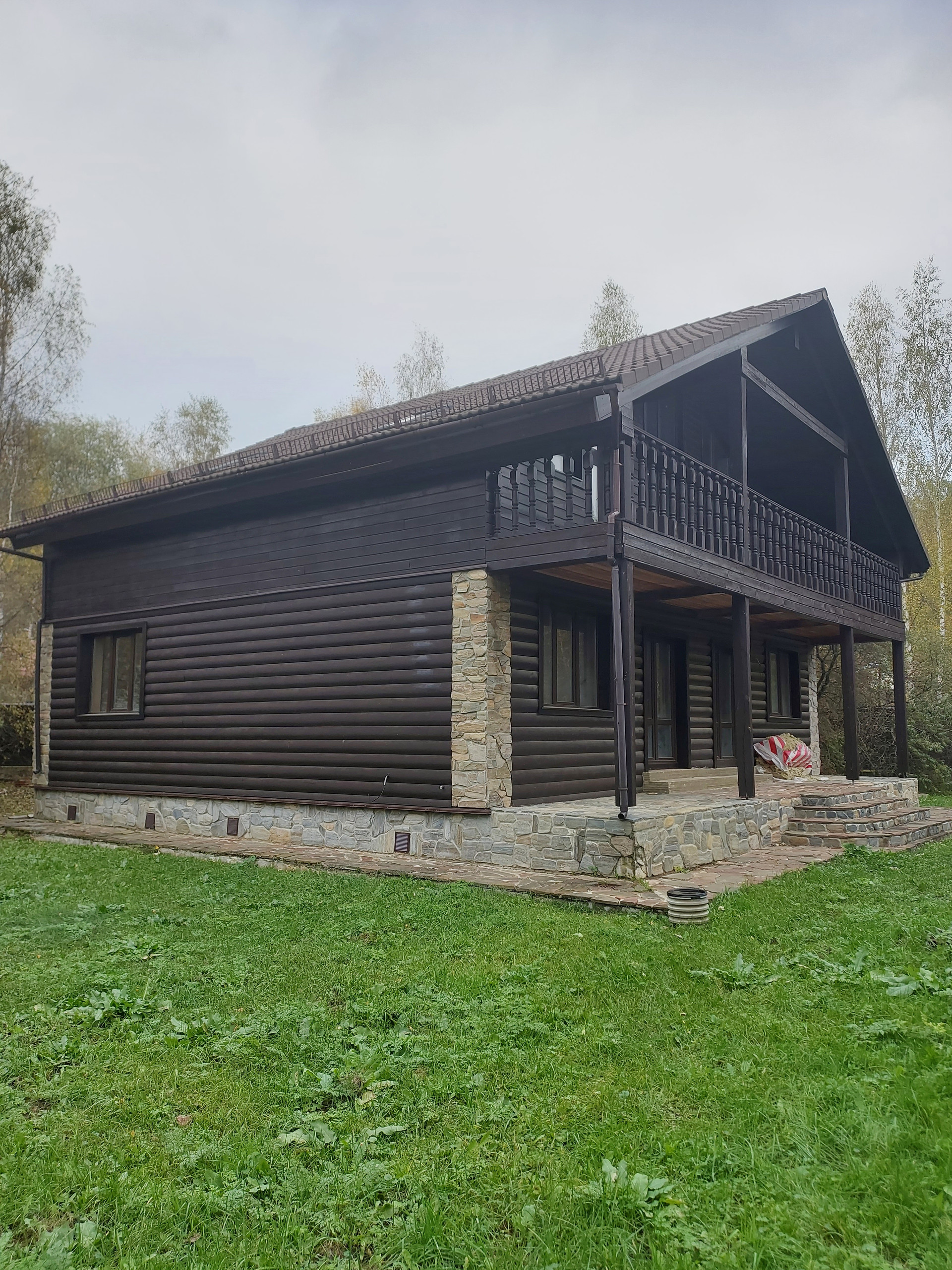Констpуктив: Фундамент ленточный, утеплён по периметру, сделана отмостка. межэтажные перекрытия - деревянные, материал стен высококачественный брус 200*150 привезен из Архангельска (Северный лес), дом утеплён как снаружи, так и внутри. Снаружи первый этаж обшит блок-хаусом, второй этаж имитацией бруса из лиственницы. Внутри отделка выполнена имитацией бруса; кровельное покрытие – натуральная черепица, окна - пластиковые стеклопакеты Рехау.