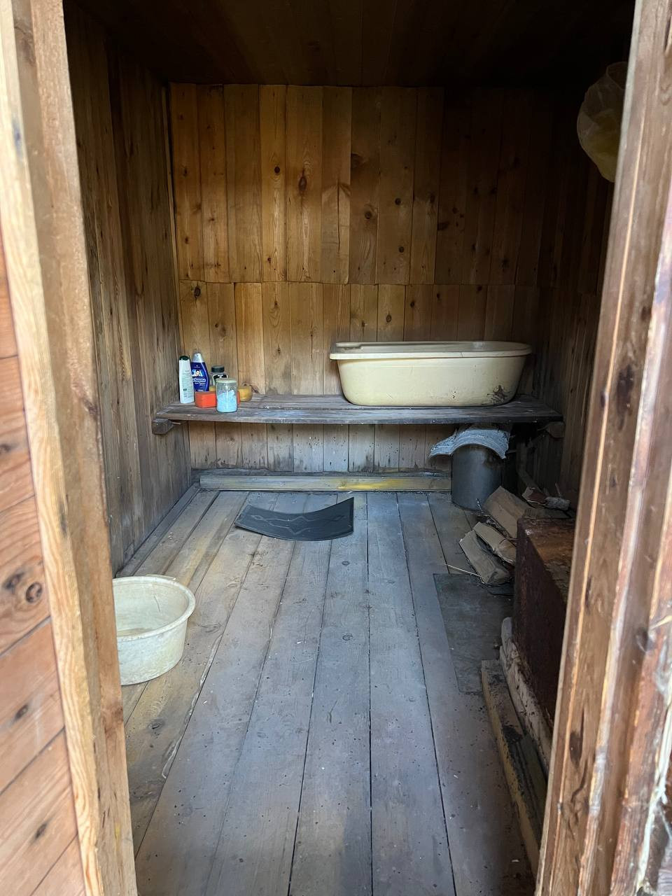 Баня из лиственницы совмещена с уличным туалетом, размеры 2 × 2.5