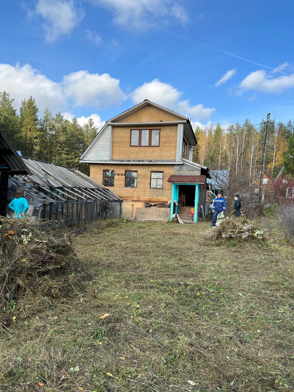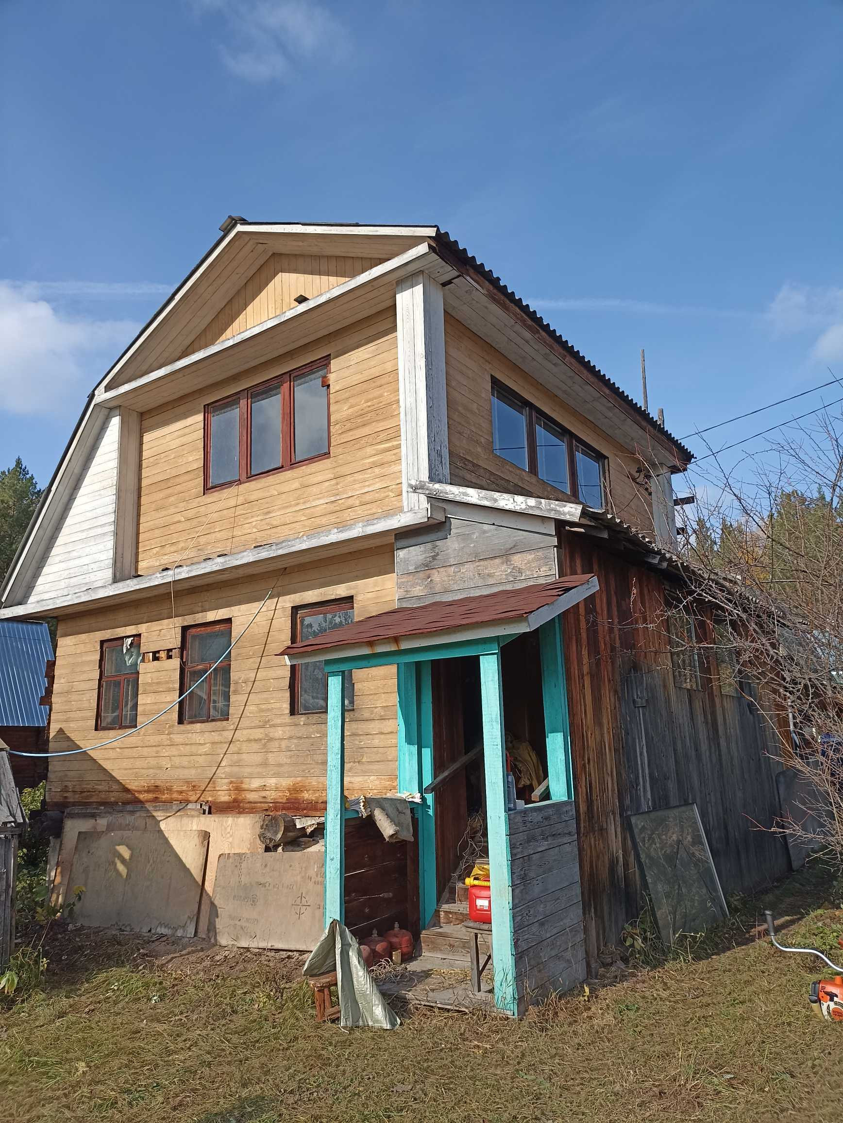 В доме тёплая комната на первом этаже, веранда, крытое крыльцо. Второй этаж не утеплен и подходит для летнего проживания. В доме остаётся много строительного материала и инструмента.