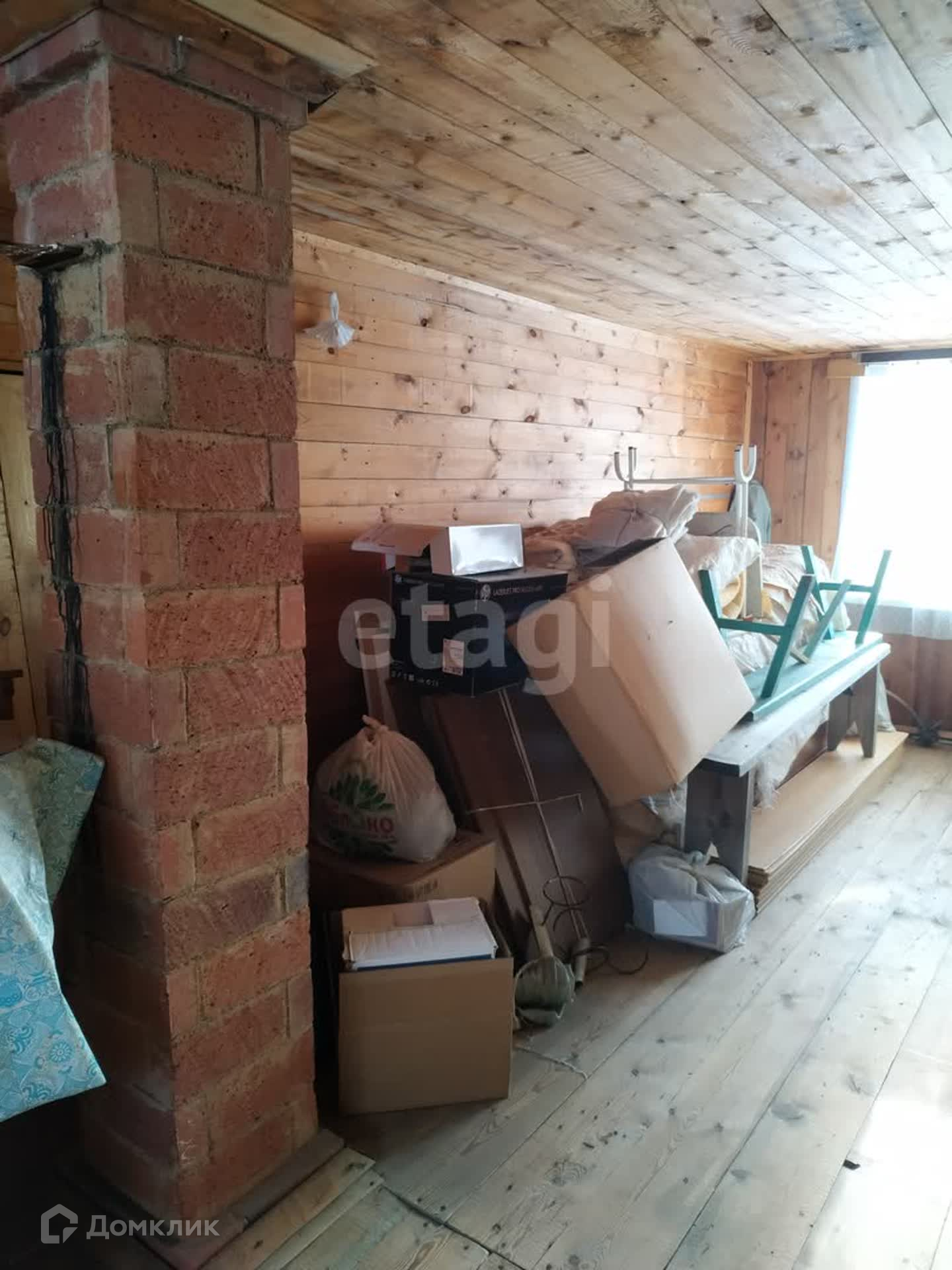 На участке прекрасный двухэтажный дом из дерева 43,4 м2. В доме на первом этаже просторная комната и отдельная кухня. Установлены пластиковые стеклопакеты. Отопление - печное, печь из кирпича, быстро нагревается и долго держит тепло. Пол и стены утеплены. В доме можно жить круглогодично. Есть погреб глубиной 1.5 м для хранения консервации. На втором этаже полноценная комната и кладовые для хранения. Дом очень теплый, чистый и уютный.