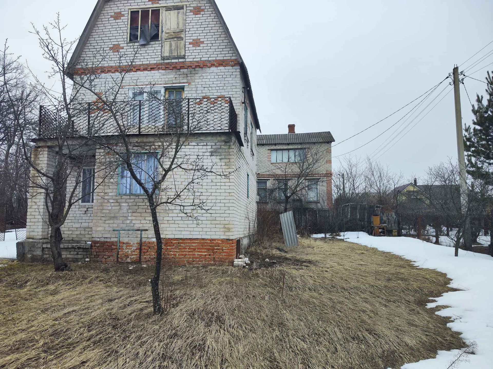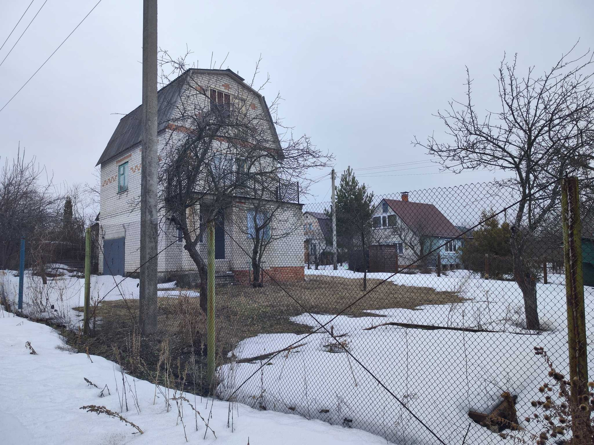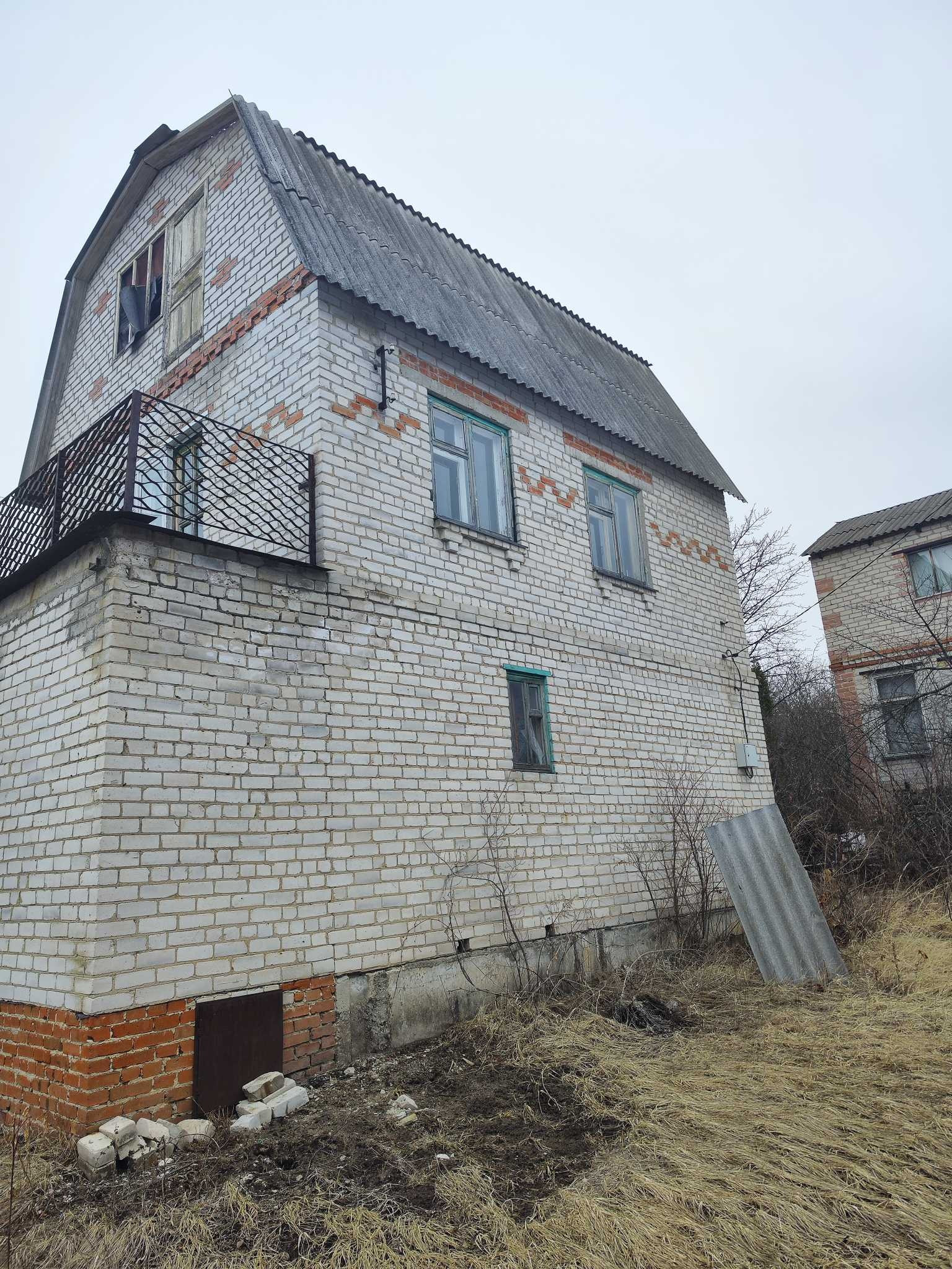 Дом,  земля 6 соток. Домик крепкий, надежный. На 1 этаж  новый ремонт, на втором этаже требуется ремонт. В доме 2 этажа и мансарда . На участке бак под воду большой вместимости. Есть плодовые деревья. Каркас под беседку (на начальном этапе). Также есть новые кованые ворота и калитка.  Подача воды в сезон два раза в день.