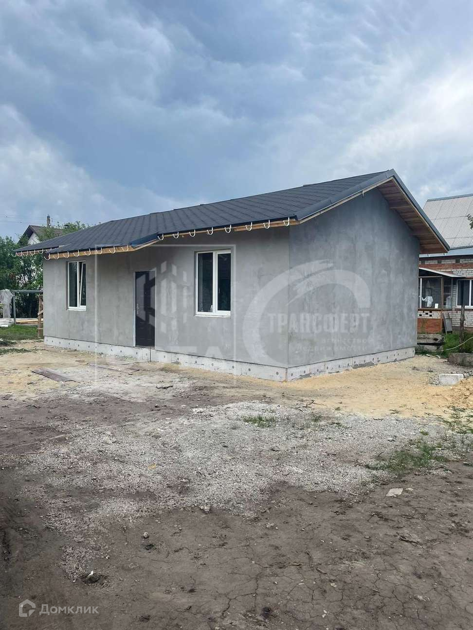 Фундамент-утепленная шведская плита (уши) с готовой системой теплого пола по всему дому (чистовая стяжка).Под фундаментом песчаная подушка 80 см.Стены выложены из газоблока.Снаружи утеплены фасадным пенопластом и отштукатурены.Внутри стены готовы под подклейку обоев.Крыша покрыта мягкой кровлей и утеплена.В дом заведено электричество 15кВ(380в).Вся проводка готова(останется повесить люстры).
