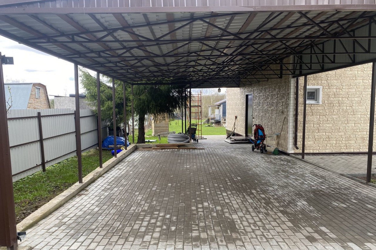 Большой навес для двух авто. Асфальтированный подъезд. Автоматические ворота. Территория снт под видео наблюдением. Новая детская площадка.