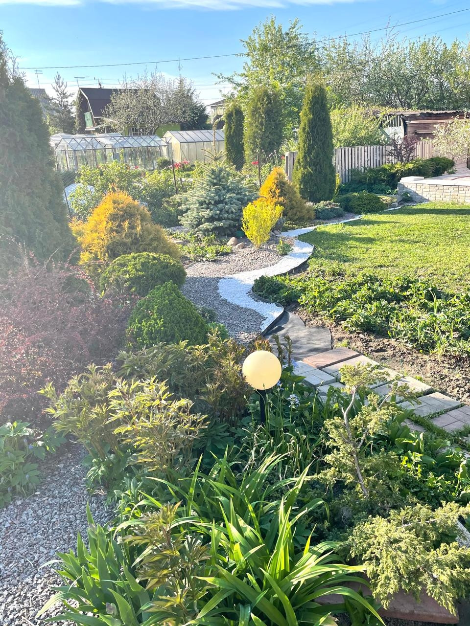 Благоустроенный участок выполнен в двух уровнях и имеет ландшафтный дизайн представленный сочетанием хвойных, плодовых и цветущих растений. А так же наличие всего необходимого на приусадебном участке, для комфортной и счастливой жизни. Баня, беседка, теплица, зона барбекю, кессон для хранения урожая и консерваций, мастерская и небольшой огородик,  парковочные места на 3 автомобиля.