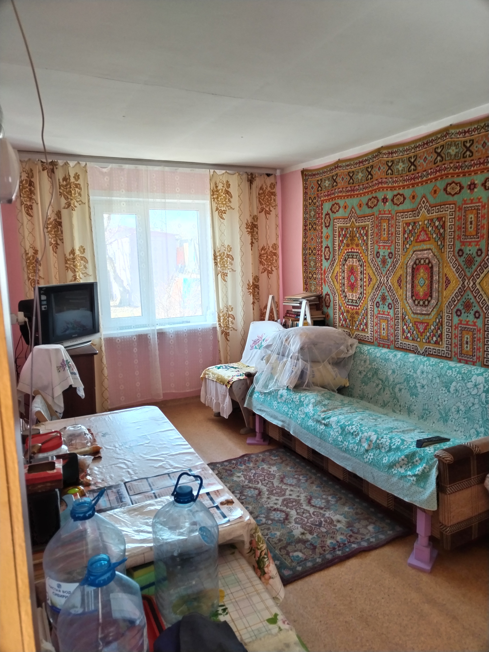 - Полы из лиственницы 50, утеплены, настелено ДВП, сверху линолеум.
