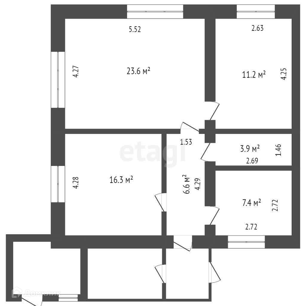 Три комнаты -23 м2, 16,5 м2 и 11 м2 и кухня — 7 м2. Прихожая и летняя веранда, в ней можно обустроить летнюю кухню или кладовую.