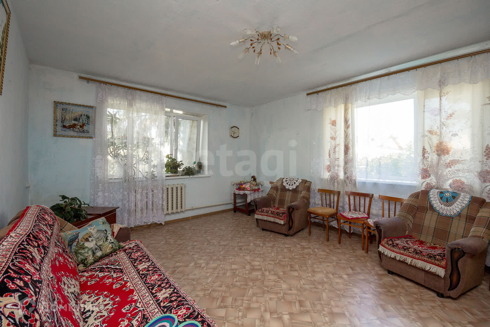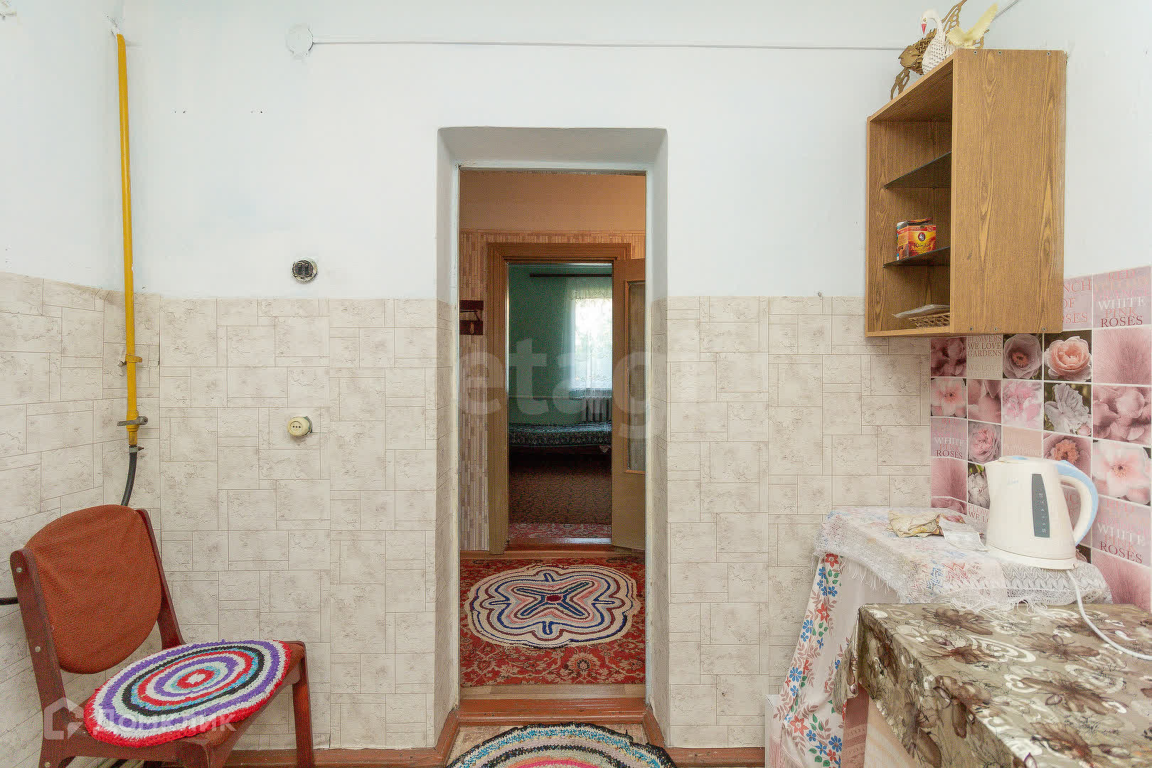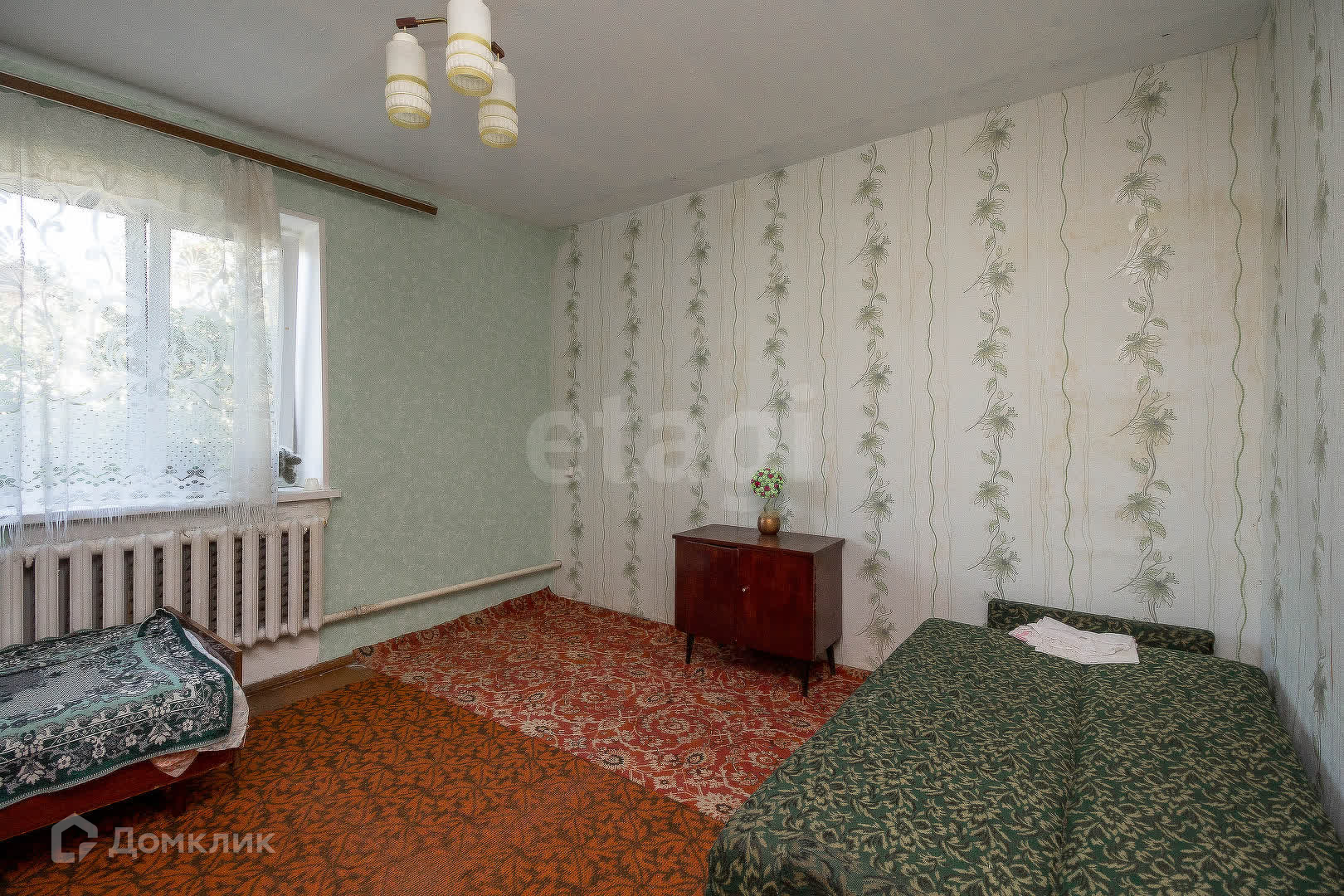 Дом на две половины, 1980 года постройки. Такие дома строили для работников совхоза. Оформлен как отдельный объект недвижимости со своим кадастровым номером. Имеет отдельный вход.
